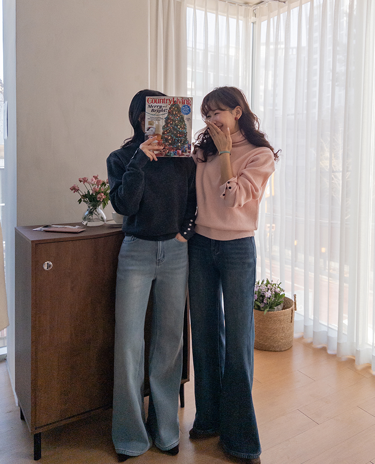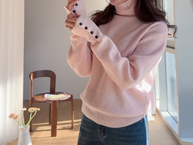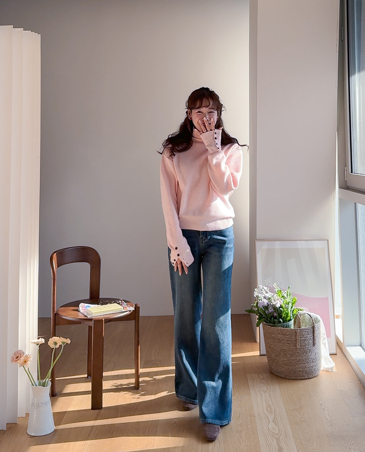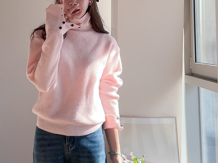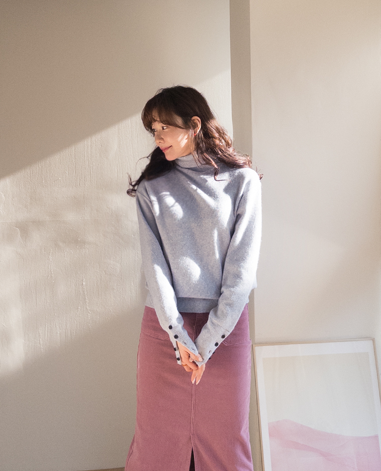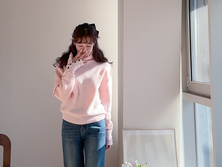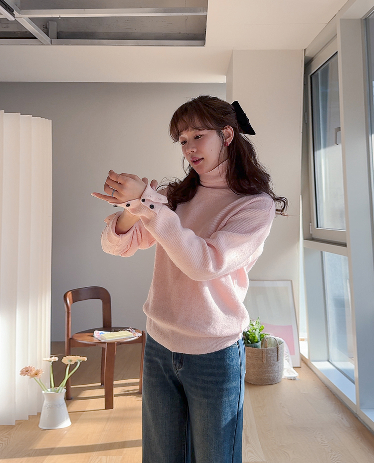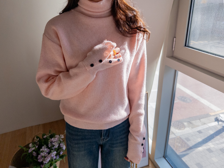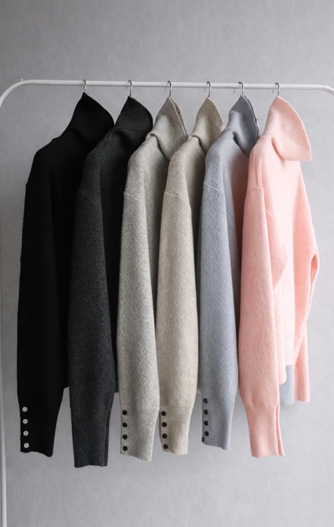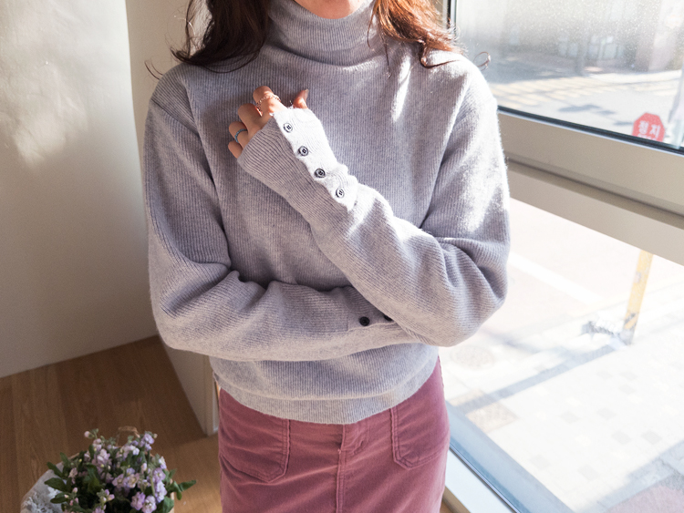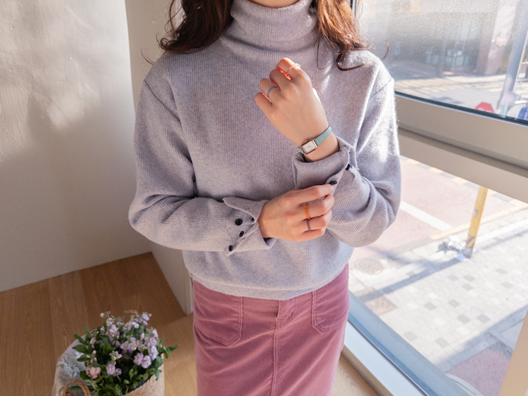 폴라넥 디자인으로 보온성을 높여주는 니트 소개해드릴게요! 울 5%로 따뜻함을 더해주고~ 스판 3%로 유연하게 늘어나 활동하기에도 편안해요~ 소매 버튼을 모두 클로징하거나 몇개 오픈해서 다양한 연출과 멋스러운 포인트까지♥ 데일리하게 입기 좋은 깔끔&심플한 디자인으로 다양한 아우터 속 이너니트로 추천드려요~!