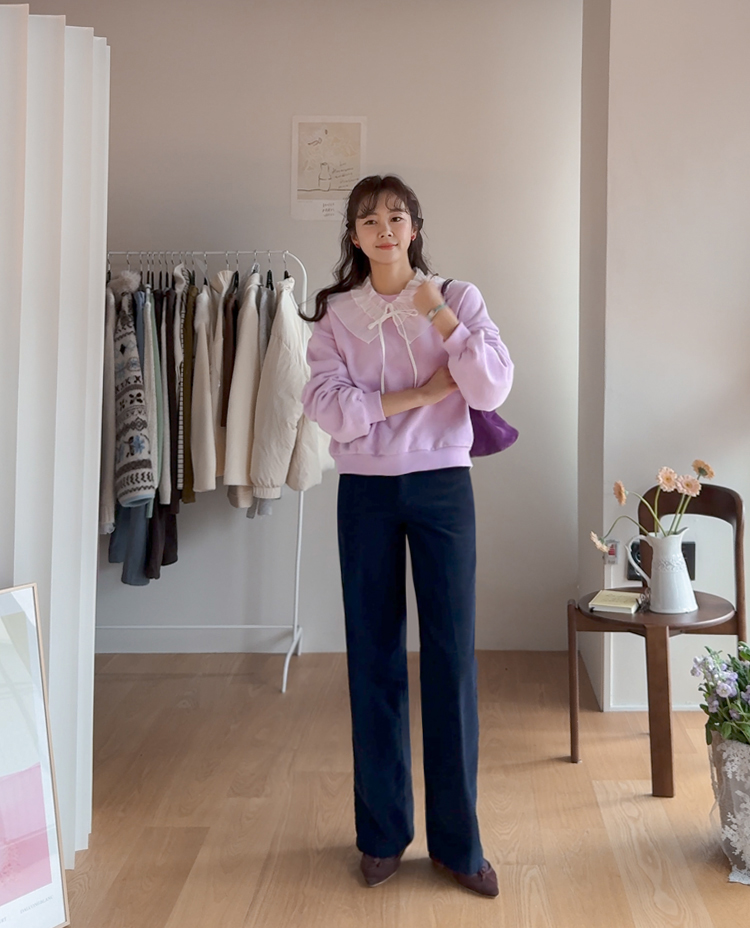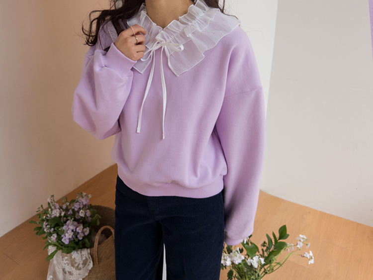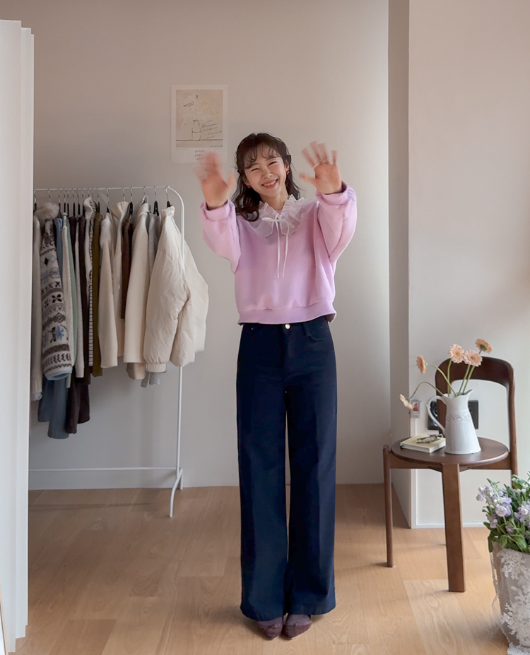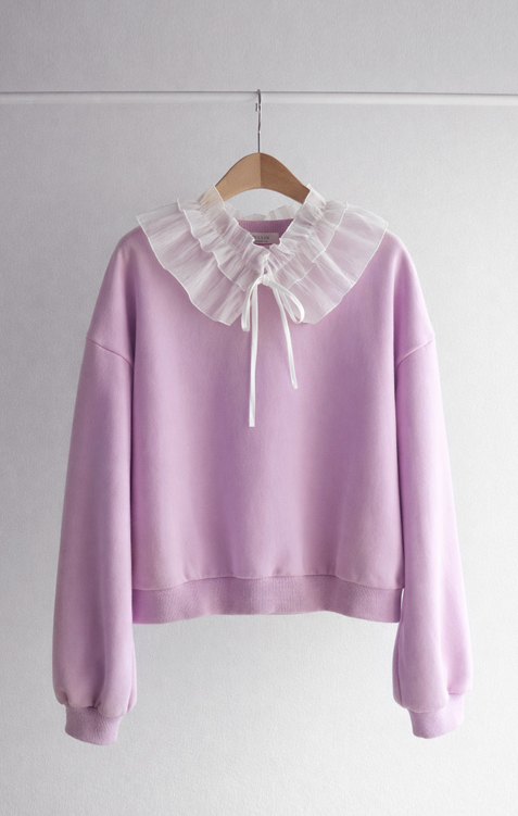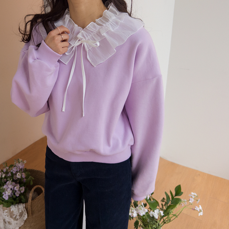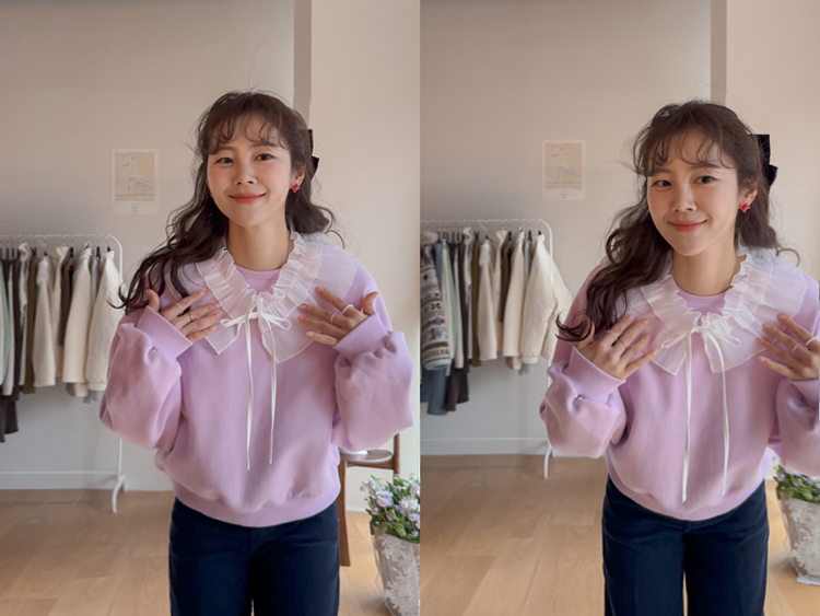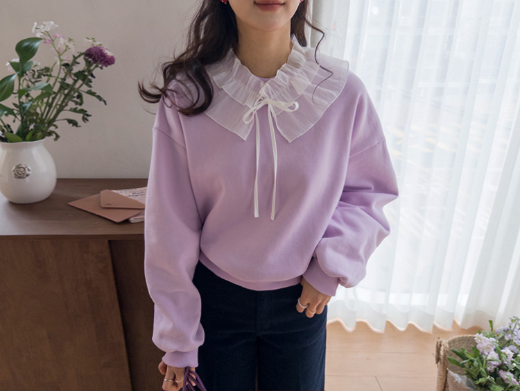 부드러운 기모 원단에 매력적인 컬러가 더해져 리린무드 가득~한 MTM 보여드릴게요:) 편하면서도 여성스러운 무드로 착용되는 맨투맨 없을까 고민하다 제작해서 보여드리게 된 맨투맨인데요 먼저 겨울에도 따듯하게 착용하기 위해 안쪽에 부드런 기모가 들어간 원단으로 셀렉해 주었구요 여유로우면서도 여리한 실루엣으로 연출되는 핏에 살짝 크롭한 길이감이 더해져서 봉봉~한 사랑스런 아웃핏까지>< 그래서 편하고 따듯하게 착용되는건 물론이구요 팬츠는 물론 스커트나 원피스와도 레이어드하기 좋아요! 또 요 맨투맨의 포인트! 바로 탈부착 가능한 레이스 카라인데요~ 요루 쉬폰소재의 카라와 함께 매치해주시면 더욱 여성미 가득~한 맨투맨 완성*.* 탈부착 가능해서 함께, 또 따로 연출이 가능해서 다양하게 활용도도 높답니다 ㅎㅎ 소장하시면 데일리는 물론! 꾸안꾸 룩으로도 활용도 높은 아이라 추천드려요~!