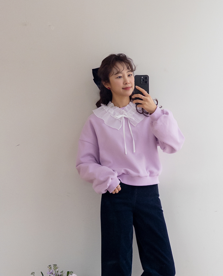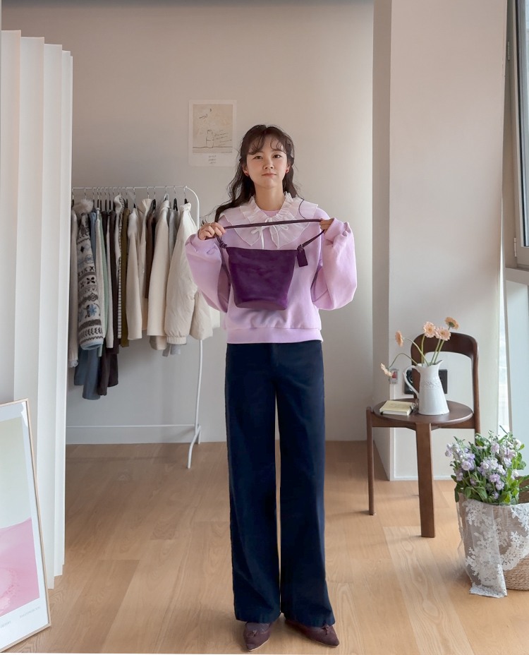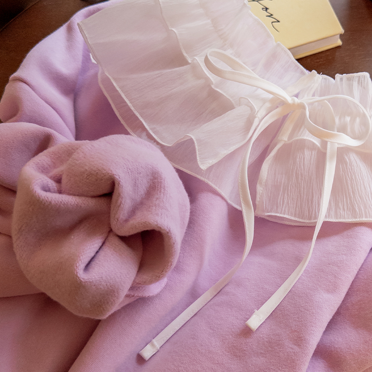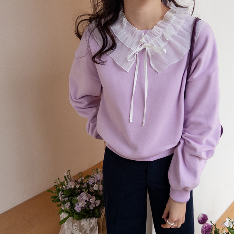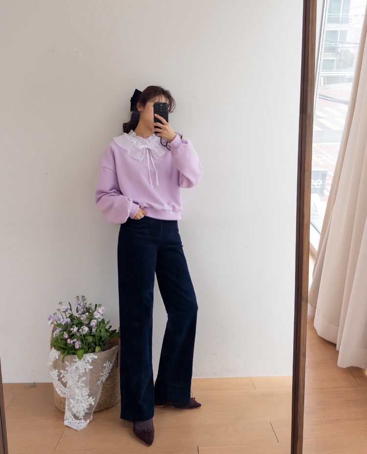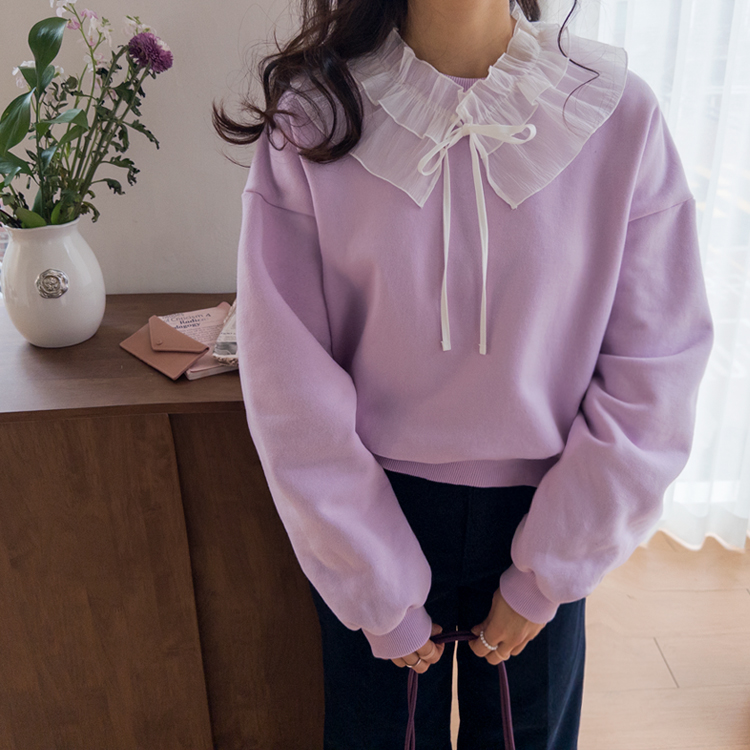 부드러운 기모 원단에 매력적인 컬러가 더해져 리린무드 가득~한 MTM 보여드릴게요:) 편하면서도 여성스러운 무드로 착용되는 맨투맨 없을까 고민하다 제작해서 보여드리게 된 맨투맨인데요 먼저 겨울에도 따듯하게 착용하기 위해 안쪽에 부드런 기모가 들어간 원단으로 셀렉해 주었구요 여유로우면서도 여리한 실루엣으로 연출되는 핏에 살짝 크롭한 길이감이 더해져서 봉봉~한 사랑스런 아웃핏까지>< 그래서 편하고 따듯하게 착용되는건 물론이구요 팬츠는 물론 스커트나 원피스와도 레이어드하기 좋아요! 또 요 맨투맨의 포인트! 바로 탈부착 가능한 레이스 카라인데요~ 요루 쉬폰소재의 카라와 함께 매치해주시면 더욱 여성미 가득~한 맨투맨 완성*.* 탈부착 가능해서 함께, 또 따로 연출이 가능해서 다양하게 활용도도 높답니다 ㅎㅎ 소장하시면 데일리는 물론! 꾸안꾸 룩으로도 활용도 높은 아이라 추천드려요~!