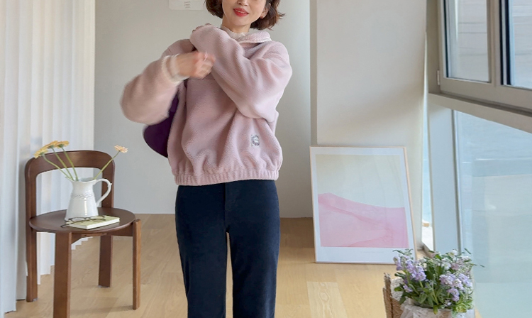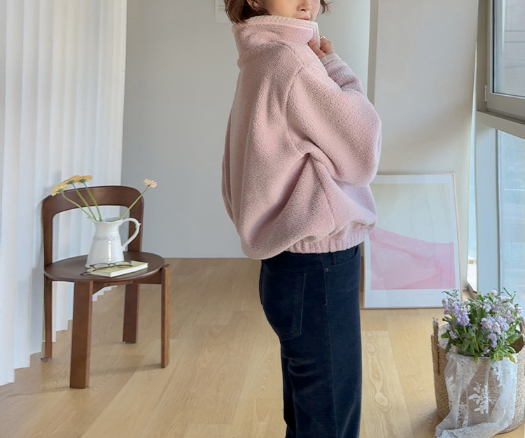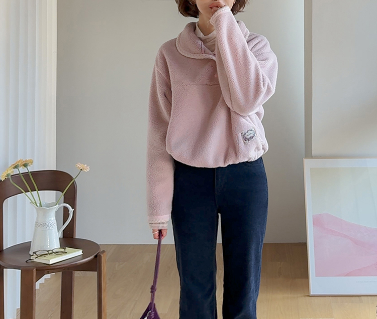 보들보들~ 넘 보드랍고 도톰한 플리스 소재로 겨울내내 귀엽고 따듯하게 착용될 반집업 후리스 보여드려요ㅎㅎ 요 아이, 겨울에 뭘 입어도 추우셨던 분들에게 정말 추천드리고 싶어요~ 도톰한 두께감의 후리스 원단에 보드라운 터치감까지 더해져서 넘 편하고 귀여운 그런 반집업 맨투맨이에요! 원단도 좋지만 디자인도 정말 귀여운데요 둥근 카라 디자인에 반집업 형식인데요 버튼도 컬러를 맞춰주어서 사랑스럽고 귀여운 포인트가 되어주고 똑딱이 버튼으로 달아주어서 간편한 오픈클로징이 가능해요:) 또 카라부분에 자수 트리밍을 더해주어서 사랑스러운 디테일도 챙겨주었답니다! 밑단은 밴딩으로 되어있어서 핏을 봉봉하게 잡아주어 루즈한 실루엣으로 연출되고 꾸안꾸룩이나 마실룩으로도 좋은데다 홈웨어로도 좋아서 사심 가득~담아 추천드릴게요-♡