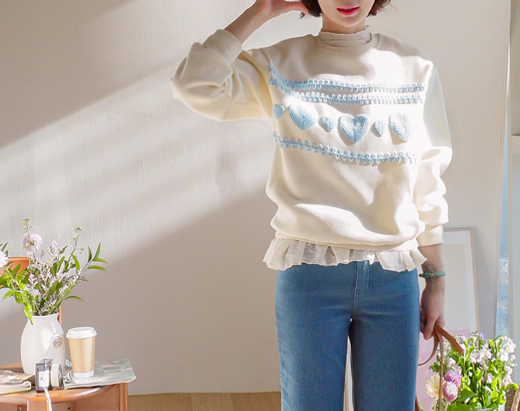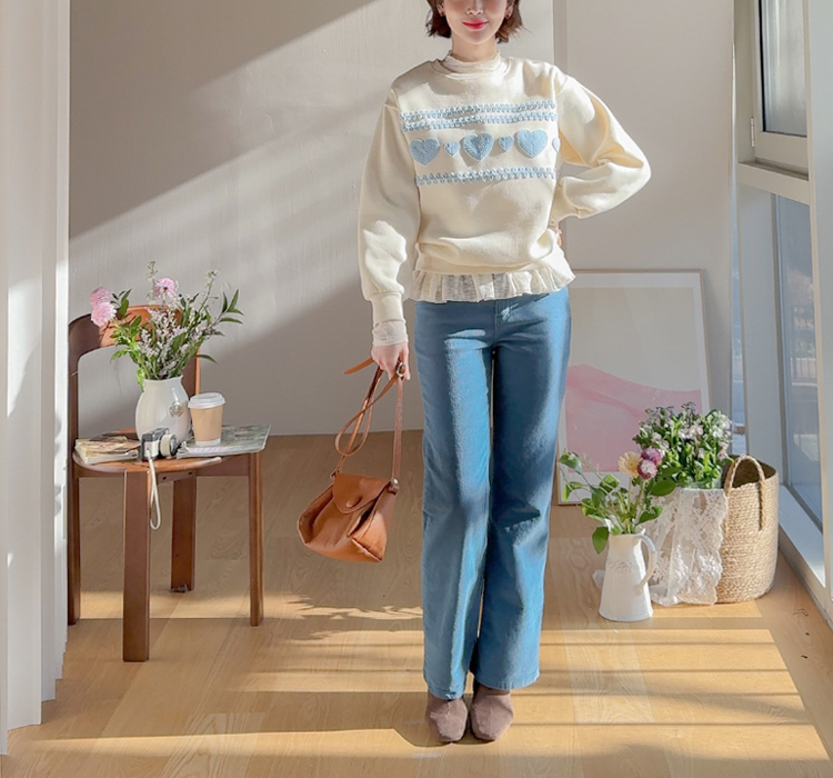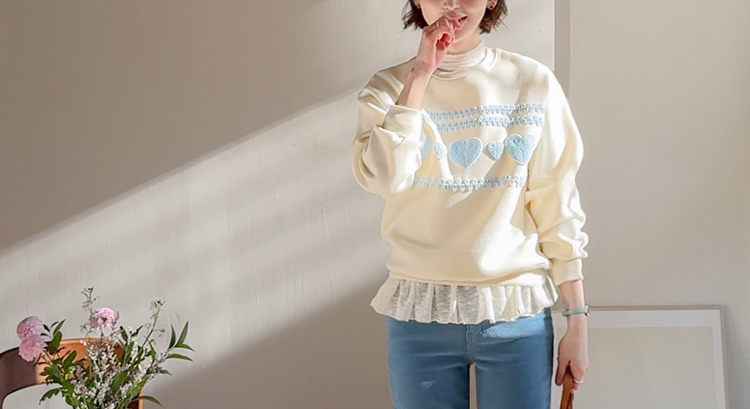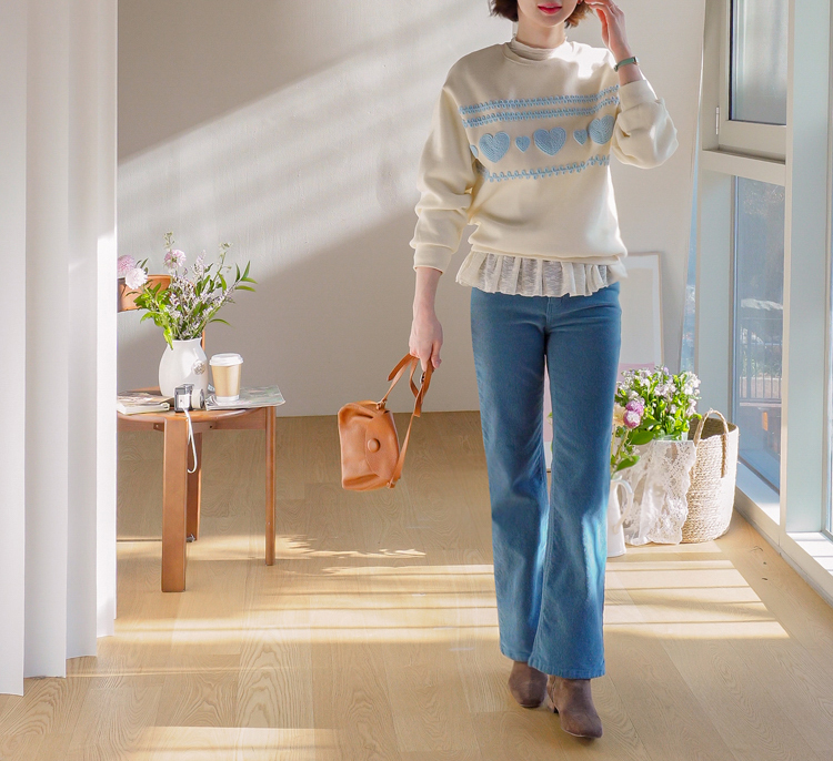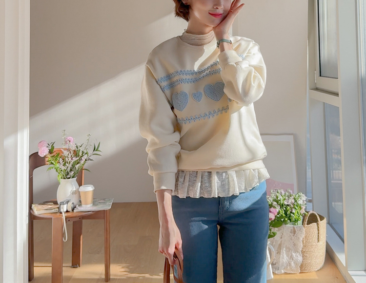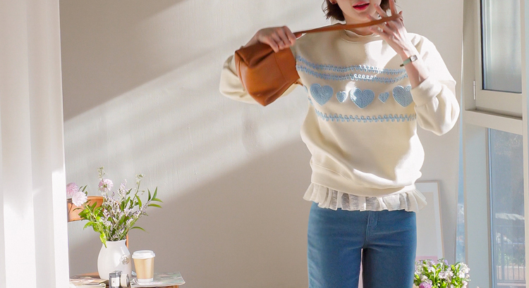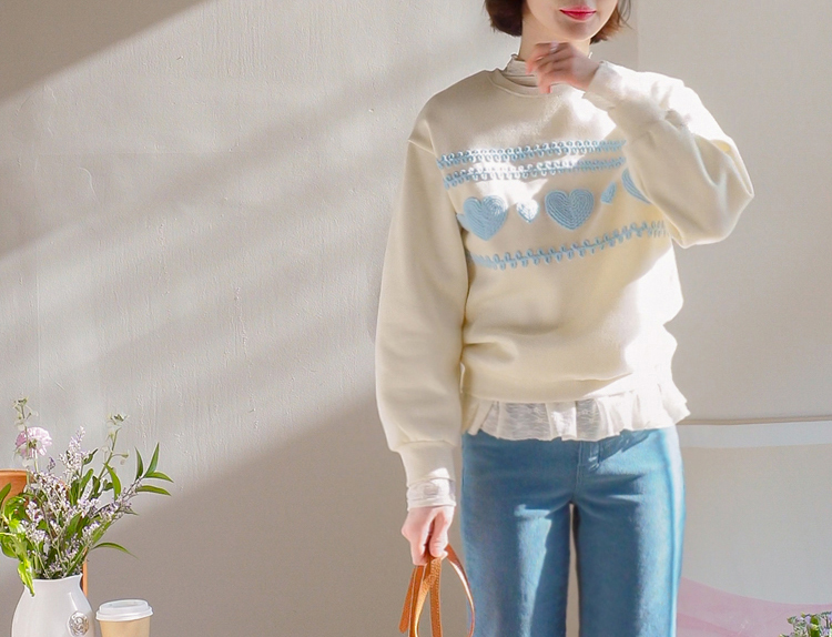 입체적인 뜨개 하트들이 러블리함을 더욱 up~ 시켜 줄 맨투맨 소개드려요! 하나만 입어도 데일리 꾸안꾸룩을 만들어주어 휘뚤마뚤~ 어디든 잘 어울리고요~ 여유있는 품으로 군살을 다~ 가려주니 더욱 손이 자주 갈 아이템이랍니다 :) 속기모로 후끈후끈~♨ 굿초이스 해주세요 ♥