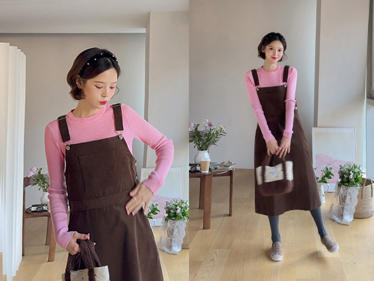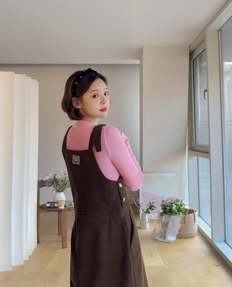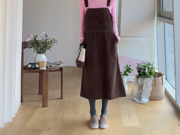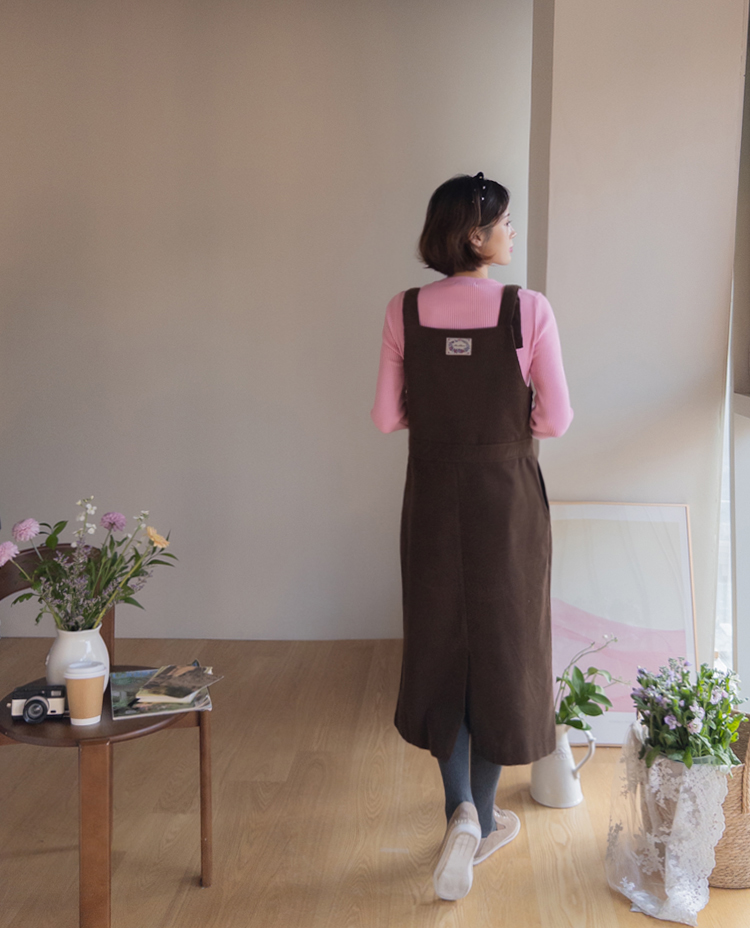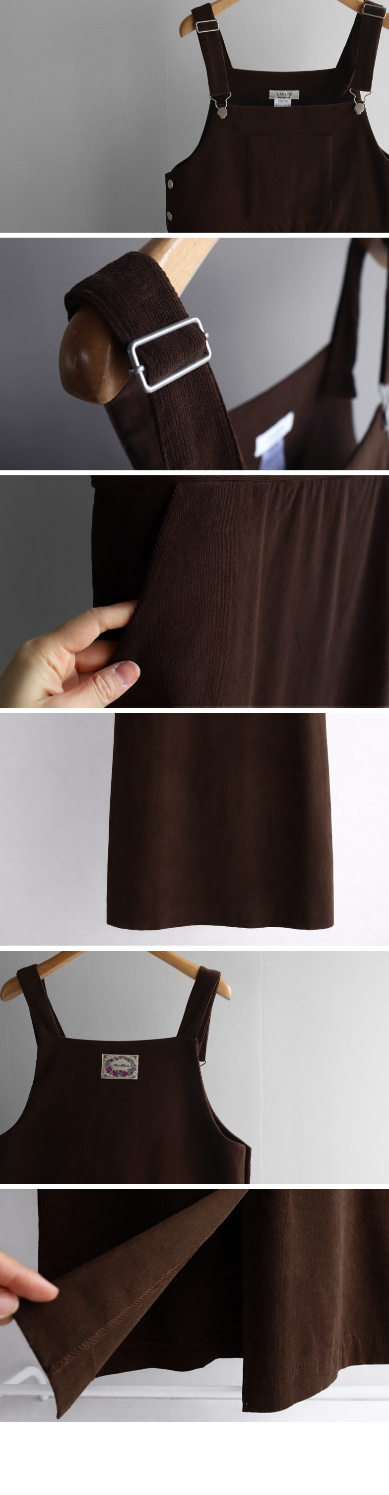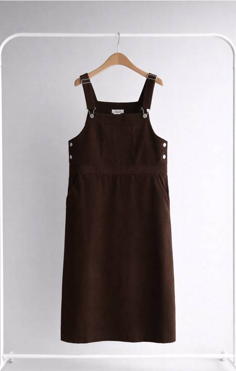 은은한 잔코듀로이 원단의 오버롤 원피스 보여드려요:) 데일리로 편하게 즐기기 좋으면서도 특별함을 더해줄 아이템 찾으셨다면 요 원피스 꼭! 눈여겨 봐주셔야 해요 ㅎㅎ 롱한 길이감의 원피스로 체형커버 효과도 톡톡하구요 어깨부분 스트랩 길이 조절이 가능해서 아담하신 분들도 조절해서 꼭 맞게 착용이 가능해요~! 사이드 흔들이 버튼으로 오픈클로징도 가능하고 요게 포인트가 되어주는데다 뒷부분에는 리린의 시그니처 플라워 라벨이 더해져 더욱 특별한 무드의 그런 원피스랍니다ㅎㅎ 부담없이 즐기기 좋은 브라운 컬러로 티셔츠나 블라우스, 니트류와 함께 예쁘게 코디해주세요~!