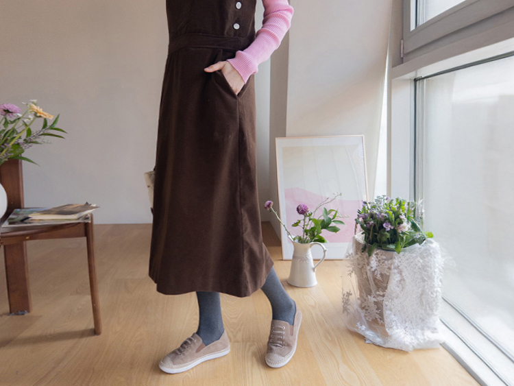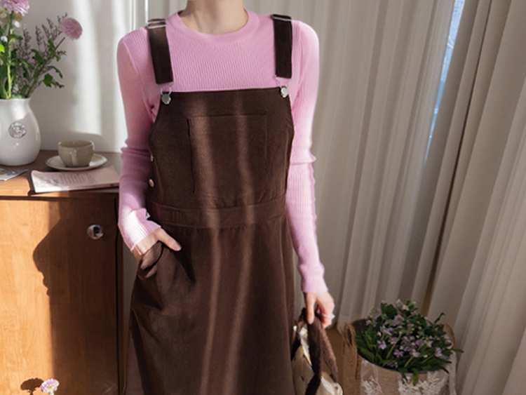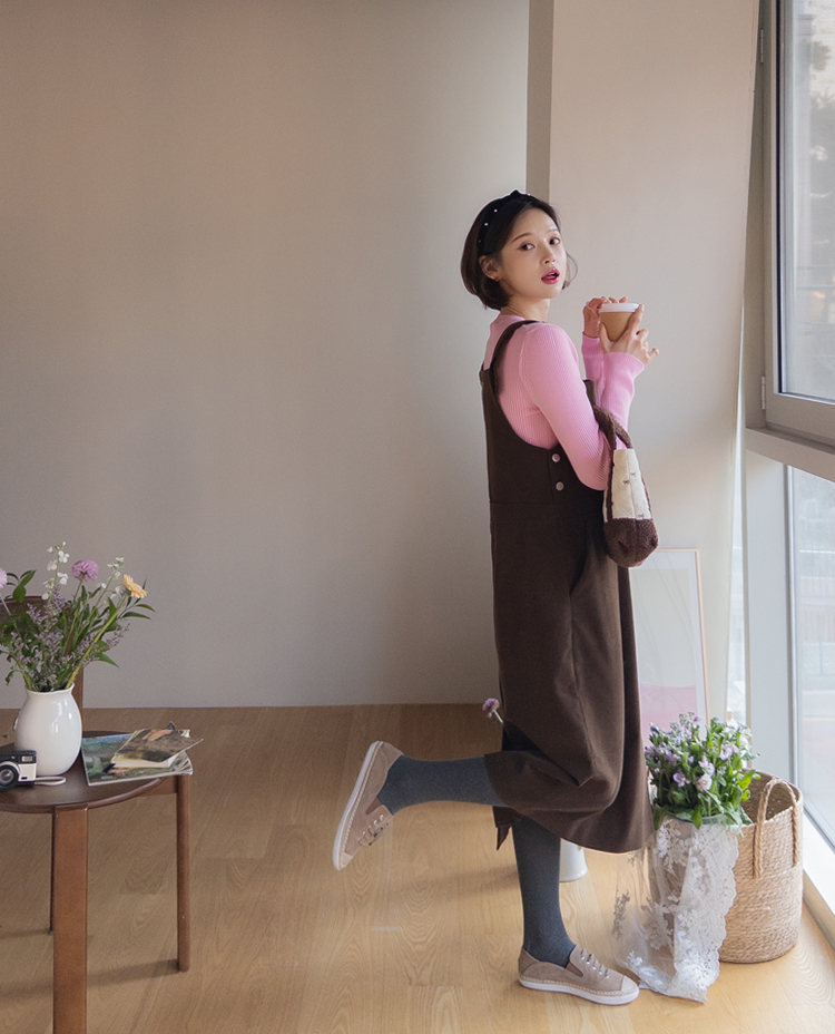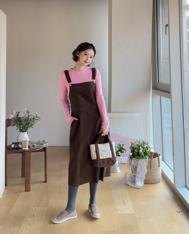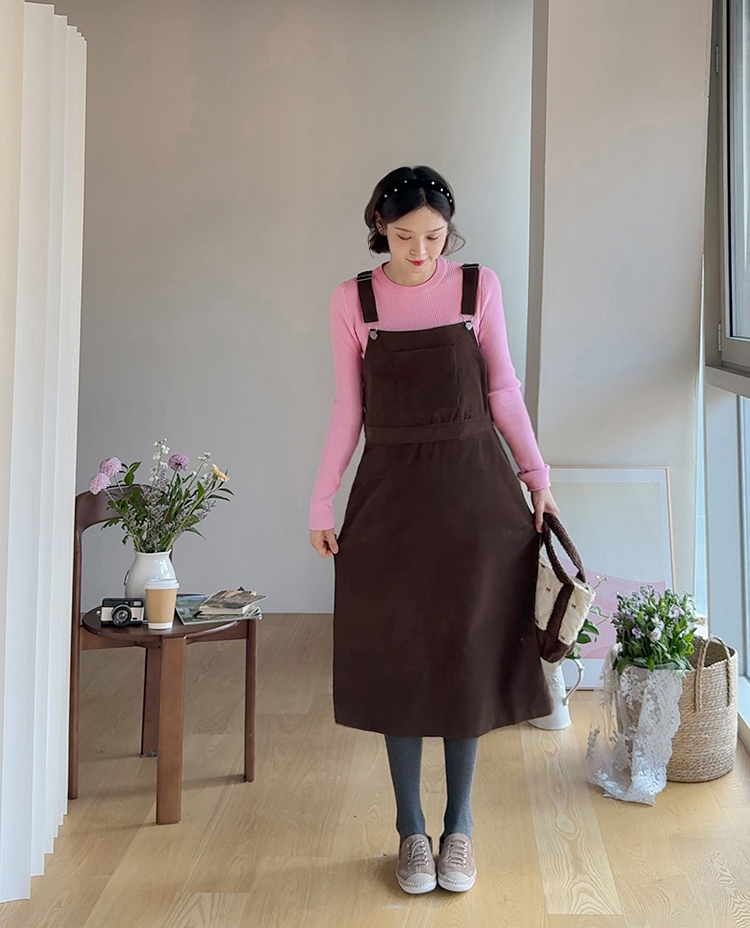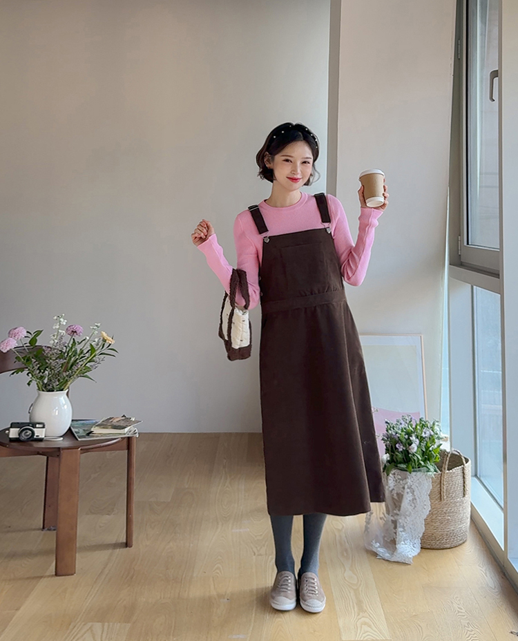 은은한 잔코듀로이 원단의 오버롤 원피스 보여드려요:) 데일리로 편하게 즐기기 좋으면서도 특별함을 더해줄 아이템 찾으셨다면 요 원피스 꼭! 눈여겨 봐주셔야 해요 ㅎㅎ 롱한 길이감의 원피스로 체형커버 효과도 톡톡하구요 어깨부분 스트랩 길이 조절이 가능해서 아담하신 분들도 조절해서 꼭 맞게 착용이 가능해요~! 사이드 흔들이 버튼으로 오픈클로징도 가능하고 요게 포인트가 되어주는데다 뒷부분에는 리린의 시그니처 플라워 라벨이 더해져 더욱 특별한 무드의 그런 원피스랍니다ㅎㅎ 부담없이 즐기기 좋은 브라운 컬러로 티셔츠나 블라우스, 니트류와 함께 예쁘게 코디해주세요~!