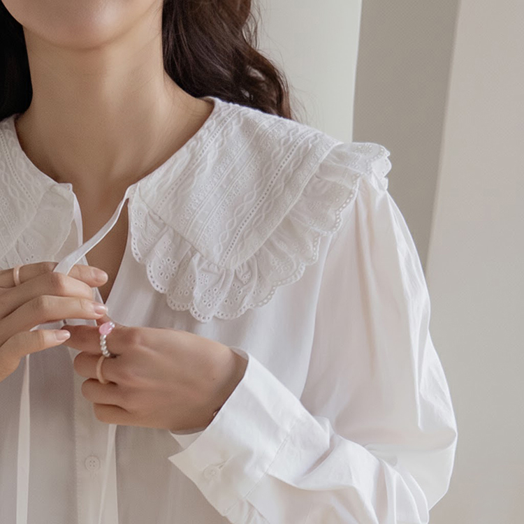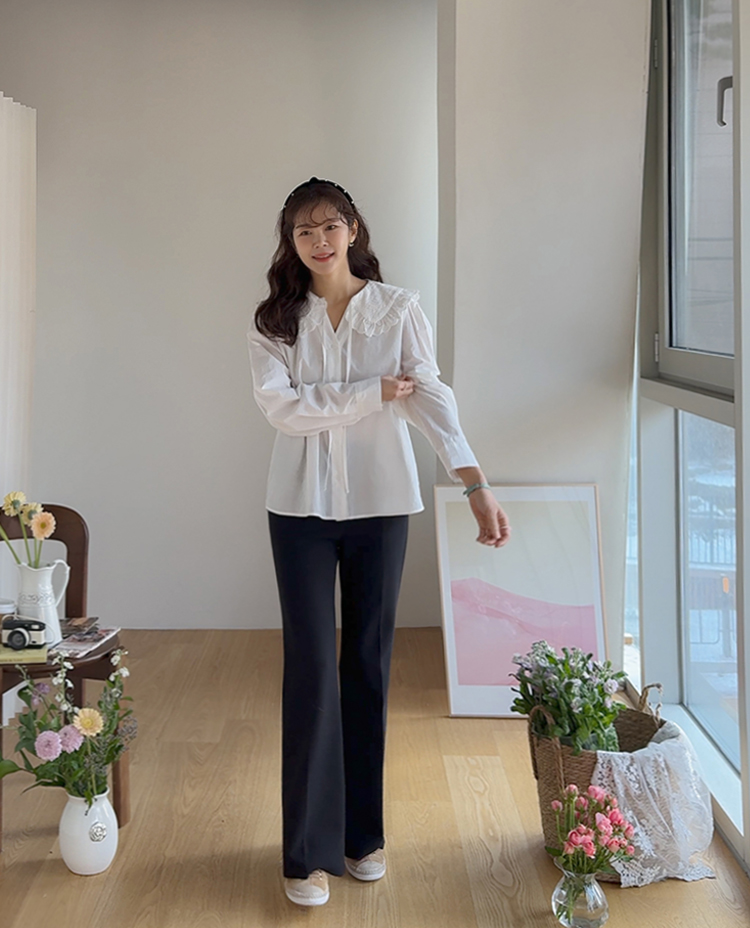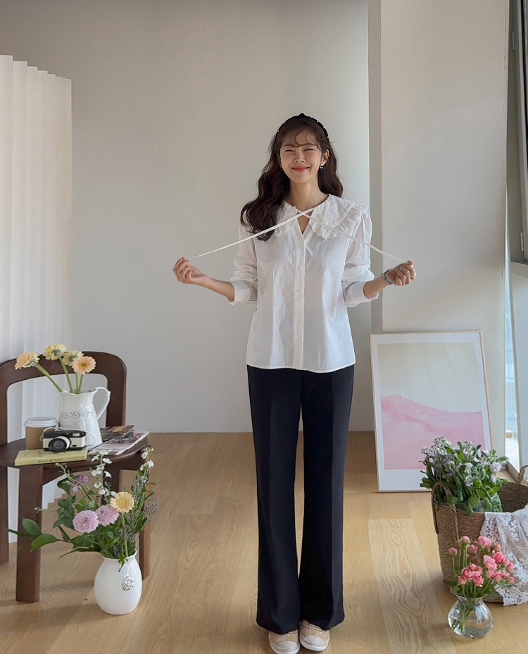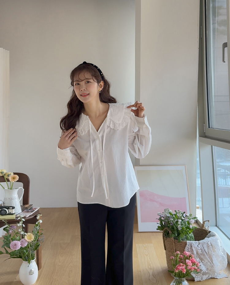 사랑스러움 가득 담은 블라우스 소개드려요 ㅎㅎ 빅카라 디자인과 브이넥라인감이 얼굴을 소멸 시켜주는 톡톡한 포인트!! 모델 언니처럼 니트에는 물론~ 자켓에도 넘~잘어울리구요~ 얇은 소재감이 끼이는 불편함 없이 만능 레이어드템으로 강!추! 리린만의 러블리 감성 가득 담긴 빅 카라 브라우스 굿초이스 해주세요~♥