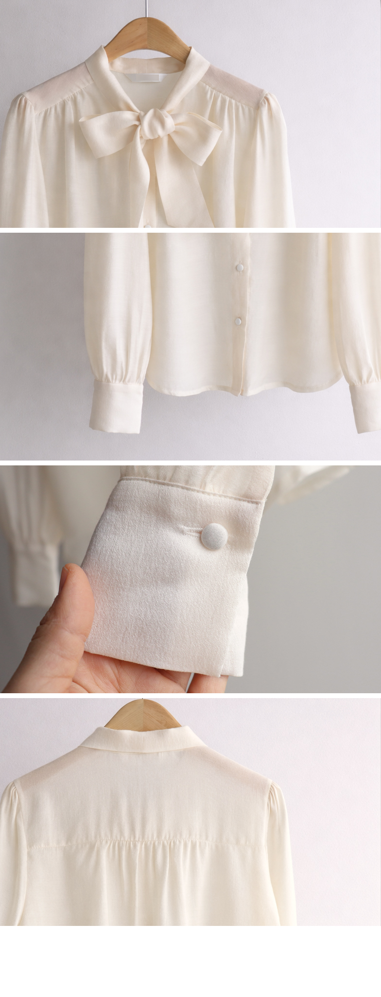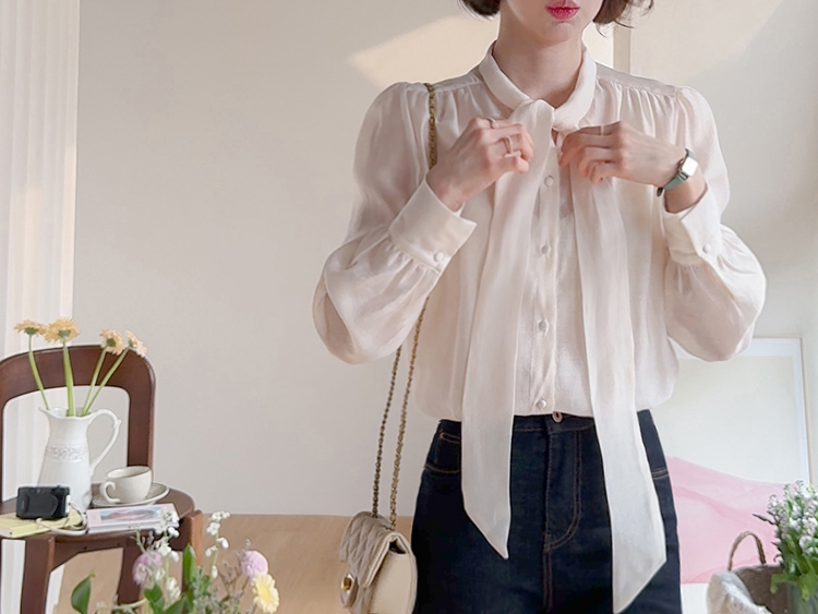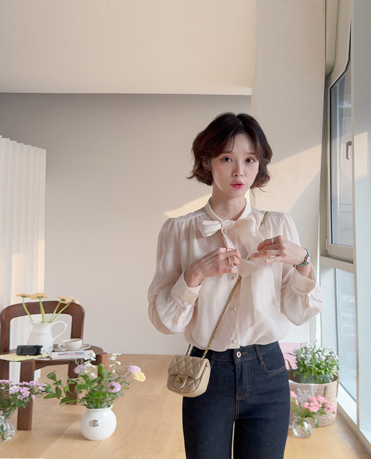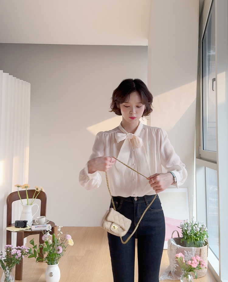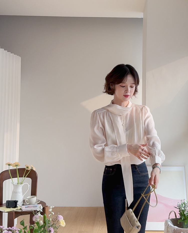니트 안에 레이어드도~ 다가오는 봄엔 단독으로~ 활용도 좋은 타이 블라우스 소개드려요~♥ 고급스러운 텐셀 소재감으로 입기만 해도 우아한~ 여성스러움이 가득~ 느껴지는데요 ㅎㅎ 흐르듯 가벼운 원단감이 돌아오는 시즌에 입기 너~무 좋아요 ㅎㅎ 타이 디자인으로 네츄럴하게 풀어서 입어도 예쁘고 깔끔하게 리본으로 묶어도 예쁜 2way 스타일!! 어깨에 잡힌 핀턱으로 자연스러운 볼륨을 만들어주어 더욱 여리~여리~해보여요 ㅎㅎ 굿초이스 해주세요~♥