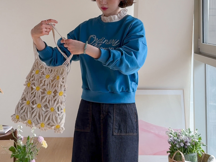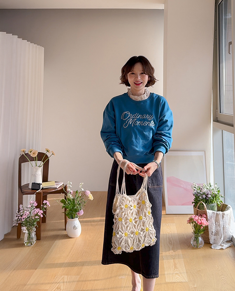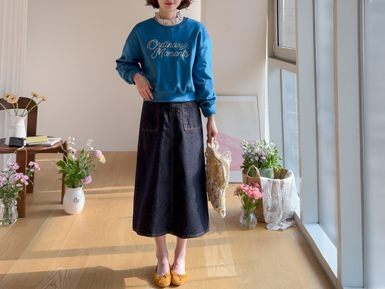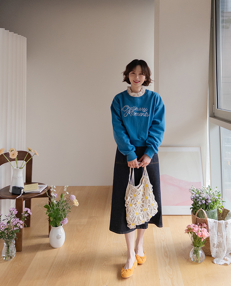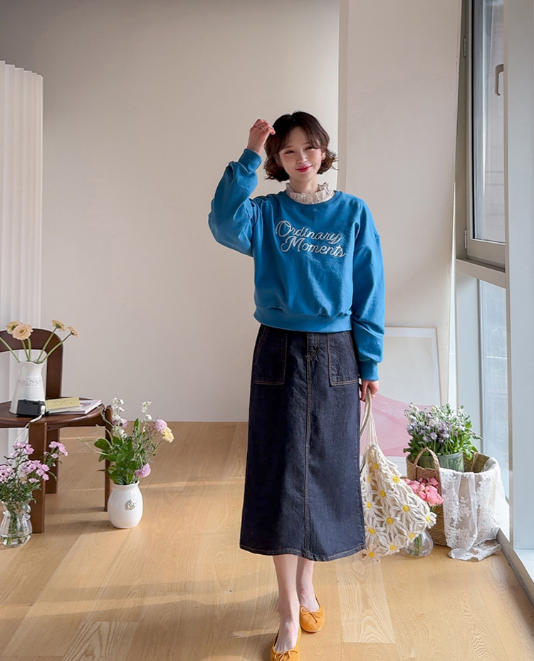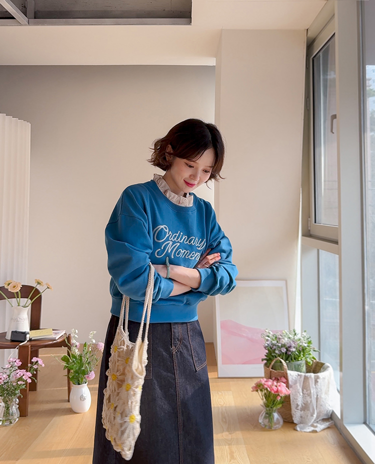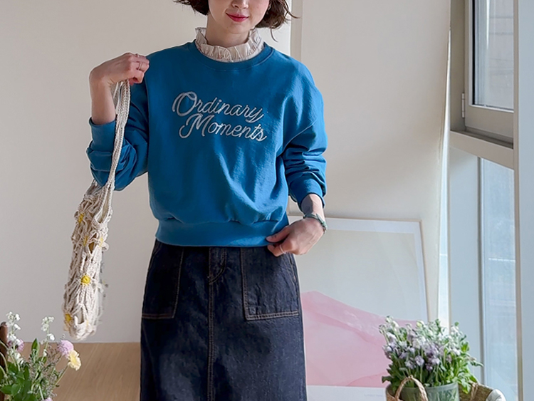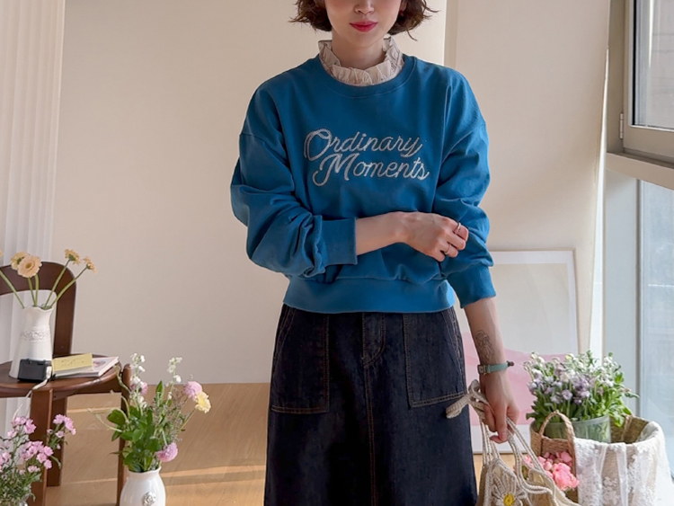 미운 군살 다~ 가리고 싶다면 요 맨투맨 추천드려요!! ^^ 여유있는 품이 군살은 다 가려주고~ 골반에 걸쳐지는 세미 크롭한 기장감이 스커트는 물론 바지에도 잘 어울려 휘뚤마뚤템이랍니다 :) 촘촘하게 새겨진 감각적인 자수 디테일이 멋스러워요 ~ 봄,가을에 즐기기 좋은 두께감이니 리린과 미리 준비해요 ♥