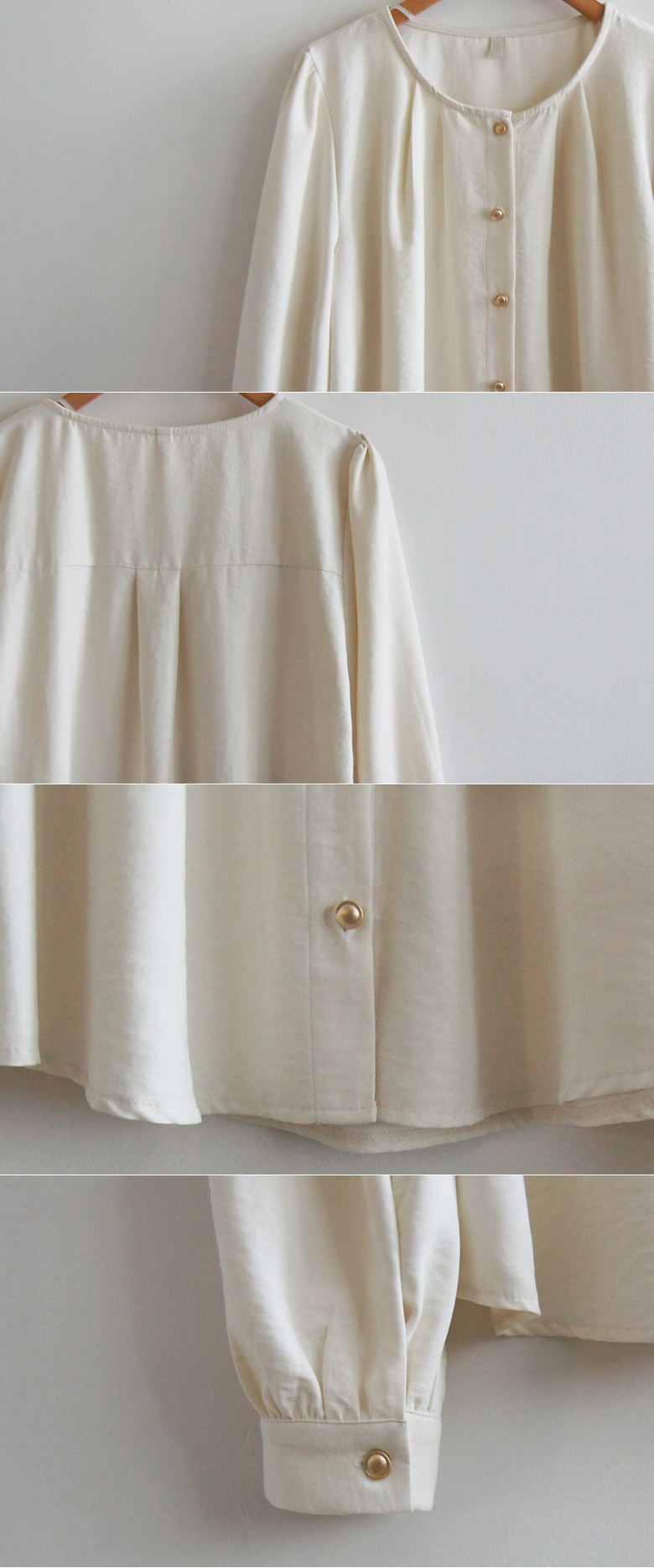 훨신 더 고급스럽게 입으실 수 있어요` 골드 버튼으로 럭셔리함과 포인트 추가구요~ 부해 보이 없이 여리하게 입으시는 블라로` 청바지 치마 정장 슬랙스 다 잘 어울려요` 지금은 이너로 입으시구요` 봄에는 단독으로 입기에도 좋구요~ 원단 너무 얇지 않아서~ 자연스럽고 유연하게 떨어지는 핏이 더 이쁘답니다` 사이즈 프리로 55-66까지 좋으시구요~ 어깨선 셔링은 과하지 않게 몸매를 딱 잡아 주면서 사랑스러운 느낌을 더해 드린답니다` 놓치지 마세요~ 진심 사심을 담뿍이 담아 강추 강추 드려요~^^