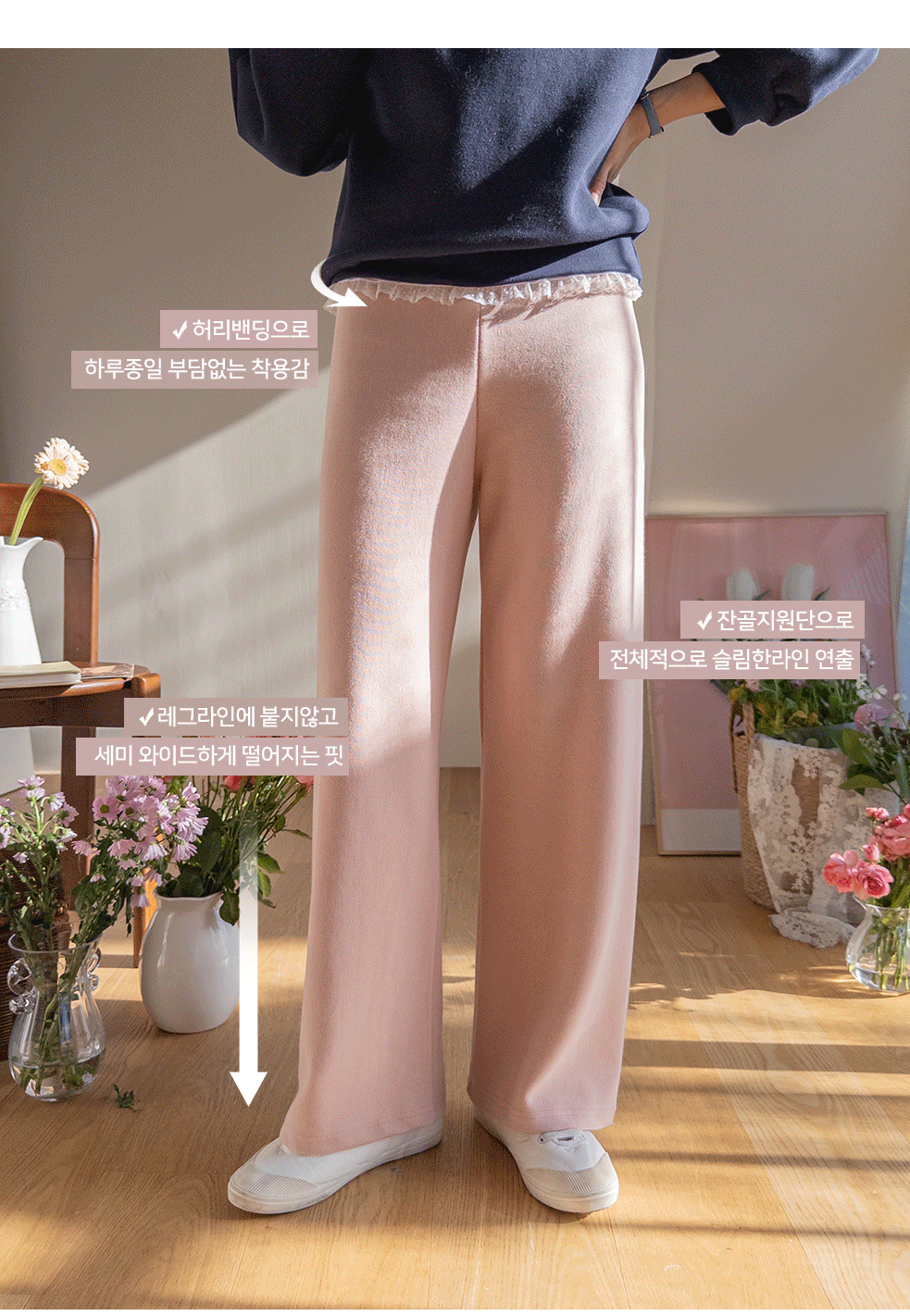 어느 룩이나 쉽고 편하게 즐기기 좋아 데일리템으로 부담 없이 손이 자주 갈 휘뚤~마뚤 팬츠 보여 드릴게요~ 레그라인에 붙지않고 세미 와이드하게 떨어지는 핏으로 부담 ZERO~ 날씬~한 핏을 만들어 준답니다^.^ 컬러별로 소장하면 웨어러블하게 코디 가능! 정말 편안해 교복템이 될 팬츠 놓치지마세요~*~*