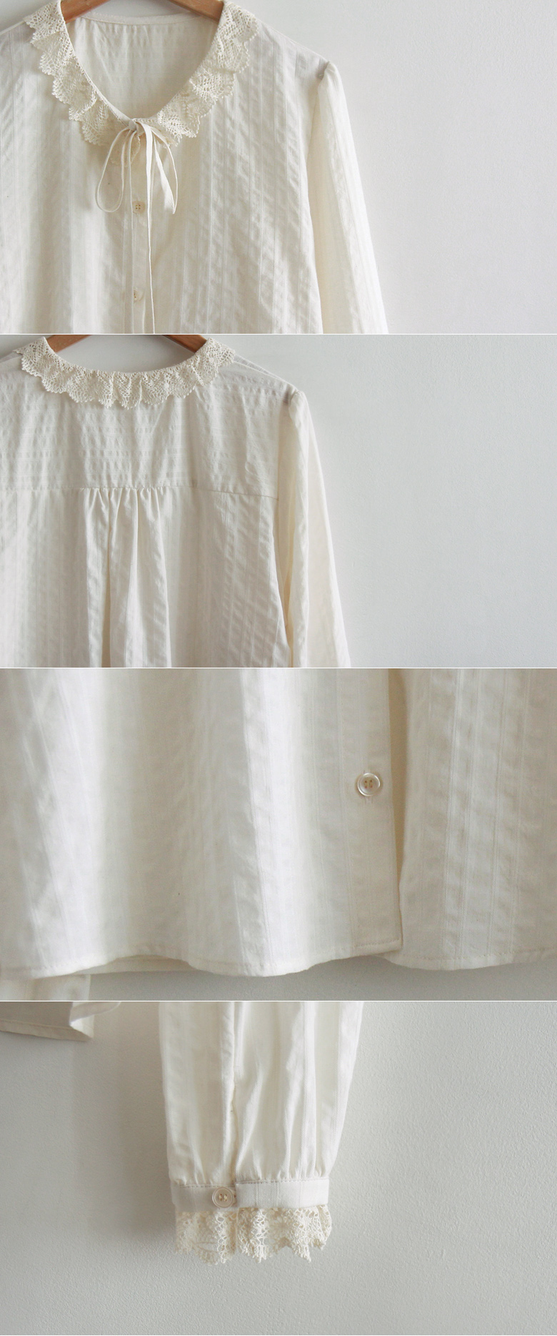 카라 레이스는 입체적인 느낌으로 실제로 받아 보시면 더 고급스럽구요~ 소매 레이스와 같은 레이스로 통일가 있으면서 포인트가 되어주는 블라였어요~ 원단은 잔잔한 결이 느껴져서~ 저는 이 원단이 주는 고급스러움이 개인적으로 너무 맘에 들었답니다~ 사이즈 프리로 55-66까지 좋으시구요` 부해 보이 없이 여리하게 입으시는 블라로` 호불호 없이 착용 가능하신 블라우스랍니다` 한 여름빼곤 어느 계절도 좋으세요~ 놓치지 마세요 진심 사심을 담뿍이 담아 강추 강추 드려요~^^