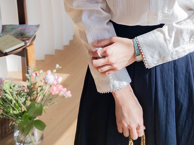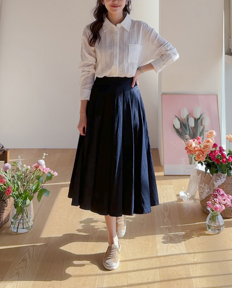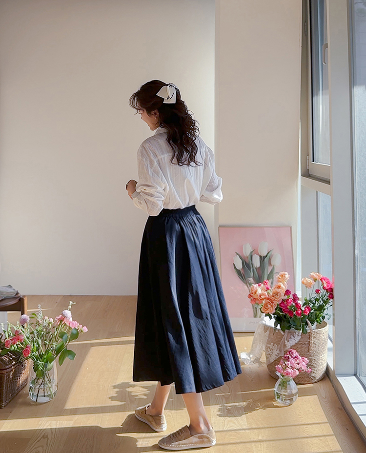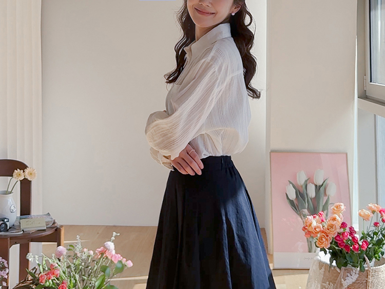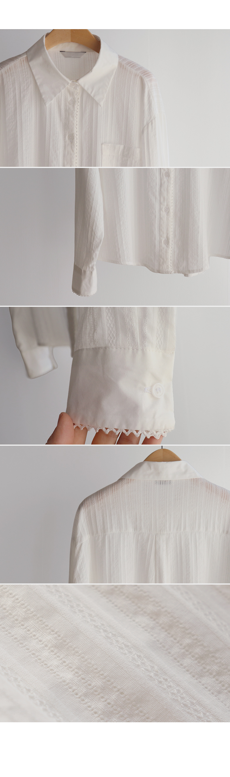 가볍고 여리한 분위기가 느껴지는 레이스 디테일 블라우스 보여드려요~^.^ 전체적으로 은은한 세로결이 들어가 있어 밋밋하지 않고 자연스럽게 포인트가 되어준답니다ㅎㅎ 앞 단추 라인과 소매 끝에 더해진 잔잔한 레이스 디테일이 과하지 않으면서도 여성스러운 무드를 살려줘요♥ 슬랙스, 스커트, 데님 어디에나 잘 어울려요! 단독으로 입어도 예쁘고 니트나 가디건, 자켓 안에 이너로 매치하면 레이스 디테일이 은근히 살아나 활용도도 좋아요*.* 데일리룩부터 출근룩, 격식 있는 자리까지 두루두루 활용하기 좋은 기본 아이템으로 추천드려요♥