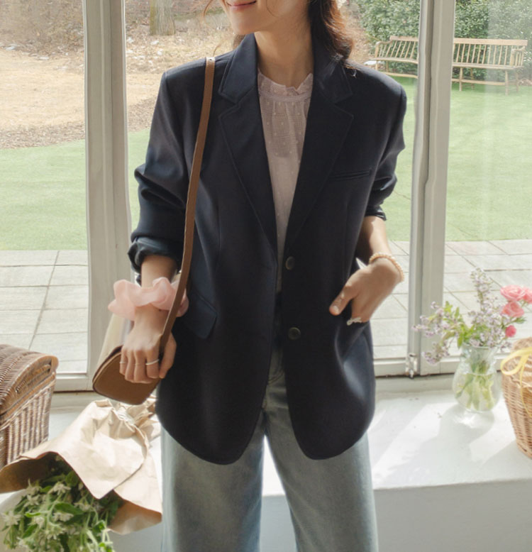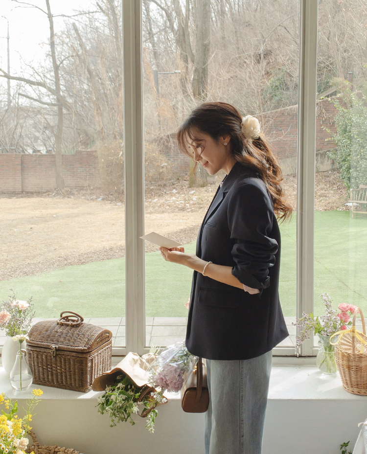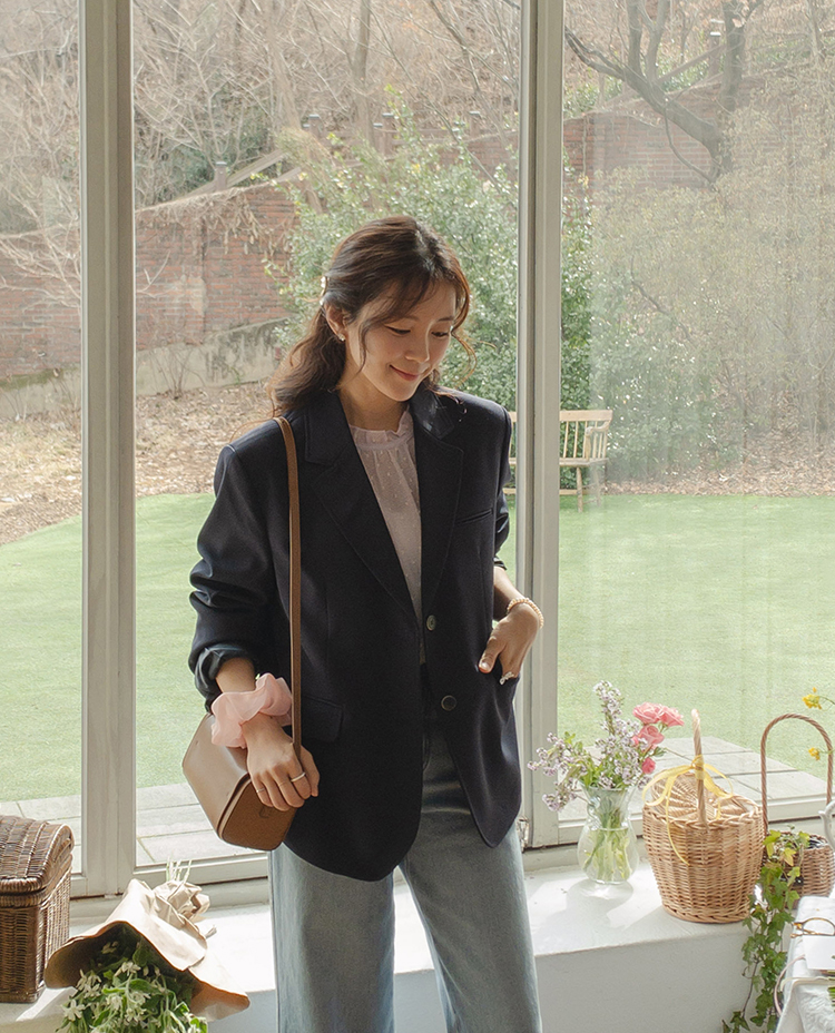 금방 다가오게될 봄을 위해 준비한 스탠다드 자켓! 자켓은 핏과 섬세한 디테일로 분위기가 확확-바뀌는데요 그래서 이번에 보여드릴 요아이는요 허리 라인은 슬림해~보이면서 어깨패드로 흐트러짐 없는 단정한 핏을 보여줄, 데일리로 착용해도 부담없는.. 그런 스탠다드 자켓이랄까요! 착용해보시면 아시겠지만 부해 보이는 느낌이 없고, 담백한 기본 이너티와 함께 했을 때도 실루엣만으로 포인트가 되어주고, 자켓을 편안하게 입고 싶은 날, 부담 없이 착용하기 좋은 아이템이에요 *.* 흐물거리는 자켓은 금방 핏이 무너지는데 요아이는 탄탄한 소재감에 어?팎筠藥?/p> 흐트러짐없이 오랜시간 착용에도 깔끔한 실루엣을 보여주고, 견고하게 잡아준 허리 절개라인에 허리라인이 자연스러우면서 슬림해보이는 맵시를 완성시켜 준답니다:) 깔끔한 립포켓과,간단한 소지품이 가능한 덮개 포켓으로 실용적인 면과 포인트적인 요소도 톡톡히 챙겨주었답니다 ^^ 안에는 소중한 물건을 넣을 수 있도록 이너 포켓을 더해줘서 실용성도 좋아요! 골반을 여유롭게 덮어주는 기장으로 다양한 하의류와 매치가 가능해요 모델처럼 청바지에는 물론이고, 플레어한 롱 스커트에 입어주셔도 너무 예쁜 기장감! 착용하는 순간 화사하면서 단아한 느낌 가득한 화이트컬러, 부드럽고 온화한 무드를 보여줄 크림베이지, 시크하면서 모던한 무드를 보여줄 다크네이비까지 데이트룩이나 출근룩으로 편안하게 즐겨 입기 좋구요 슬랙스나 롱 스커트와 매치해 하객룩이나 격식있는 자리에서도 연출하기 좋을 자켓이에요♡