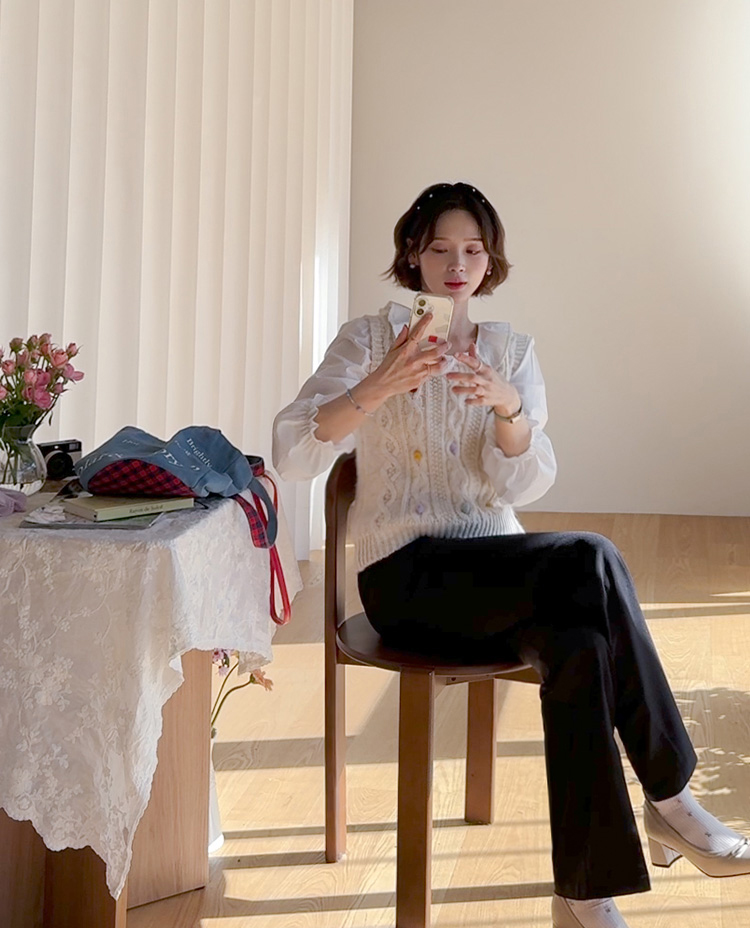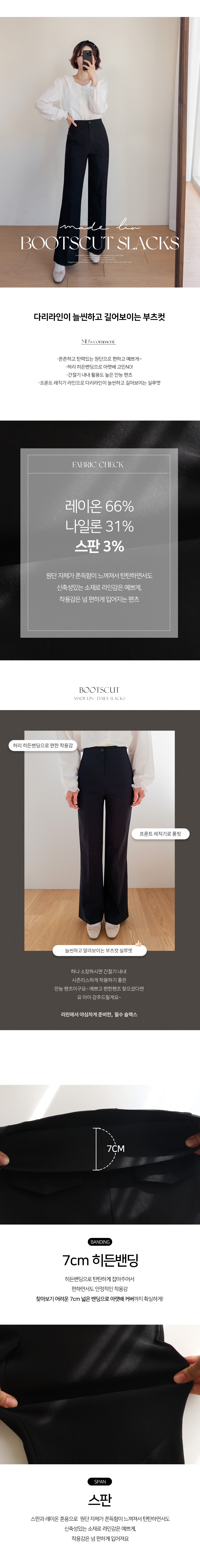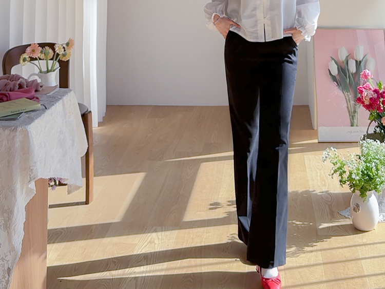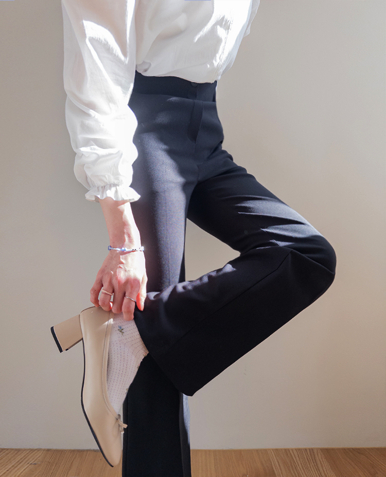 쫀쫀~한 신축성도 있으면서 탄탄함이 느껴져 예술적인 라인감이 돋보이는 LIN.MADE 팬츠 보여드려요~! 요 팬츠, 허리는 히든밴딩으로 탄탄하게 잡아주어서 편하면서도 안정적인 착용감으로 입어지구요 원단 자체가 쫀득함이 느껴져서 탄탄하면서도 신축성있는 소재로 라인감은 예쁘게, 착용감은 넘 편하게 입어지는 그런 팬츠에요ㅎㅎ 부츠컷 실루엣으로 무릎 아래부터 퍼지는 실루엣이라 다리라인을 커버하는 효과도 있구요~! 프론트 레직기 라인이 잡혀있어서 입기만 해도 자연스러우면서 다리라인이 늘씬하고 길어보이는 실루엣으로 연출된답니다! 하나 소장하시면 간절기 내내 시즌리스하게 착용하기 좋은 만능 팬츠이구요~ 예쁘고 편한팬츠 찾으셨다면 요 아이 강추드릴게요~♥