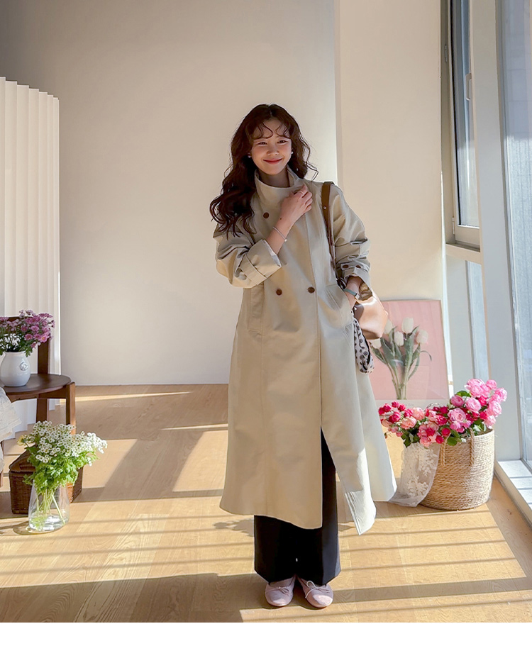 【クラシックなダブルボタンデザインで高級感UP】【ウエストストラップセットでシルエット調節可能*.*】【ロングなキビ感で体型カバーまでGOODㅎㅎ】【デイリー・オフィスルックとも活用も最高♡】