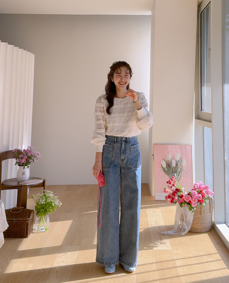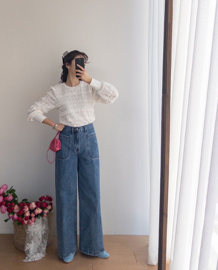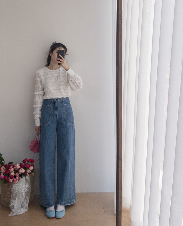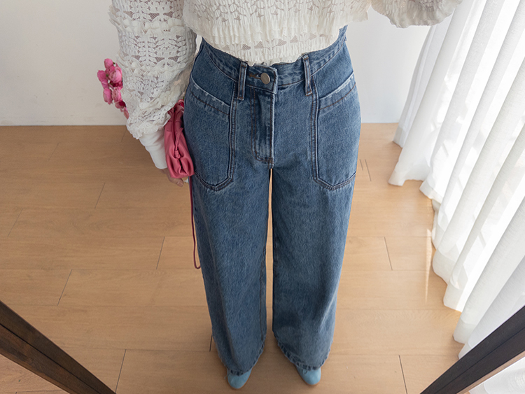 탄탄한 난스판 소재로 늘어짐 걱정 없이 착용 가능하고 아방하니 귀여운 실루엣에 앞포켓 디테일로 다양한 룩에 포인트 있게 활용 가능한 팬츠 보여드려요~! 요 팬츠! 보자마자 넘 귀엽다고 생각하신 분들 많으실 것 같은데요ㅎㅎ 프론트 포켓에 포켓 입구부분에 데미지 디테일로 내추럴한 포인트까지 더해준 데님이에요~ 아방한 와이드 실루엣으로 체형부각 걱정 없이 편안하면서도 귀엽게 착용되구요 탄탄한 난스판으로 매년마다 착용해도 늘어짐 걱정 없는데다 실루엣 보존도 잘 되어서 오래도록 함께 즐기기 좋으실거에요:) 하나 소장하시면 티셔츠, 니트, 블라우스 등 다양한 상의템과 어디든 매치하기 좋은 아이템이라 꼬옥 추천드릴게요~!