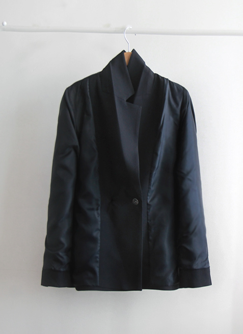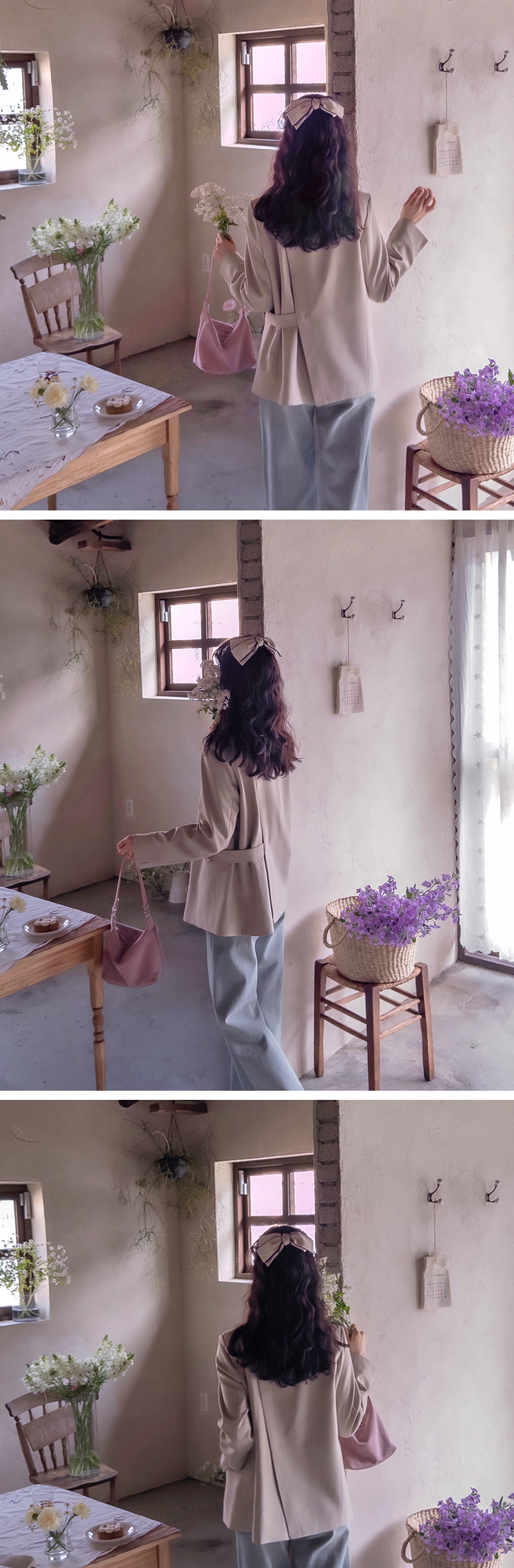 씸플하고 라인 이쁜 아우터에 영문 자수 포인트에 뒷 모습까지 사선으로 떨어지는 디테일이~