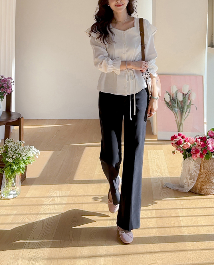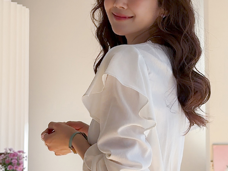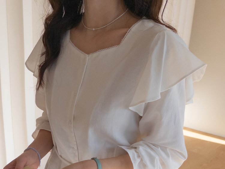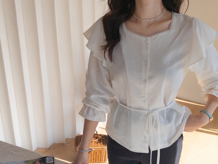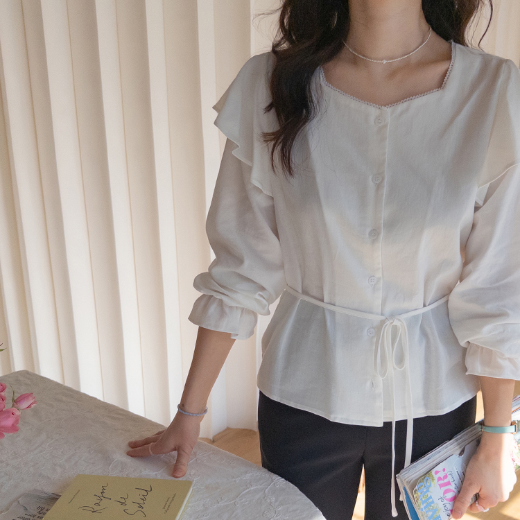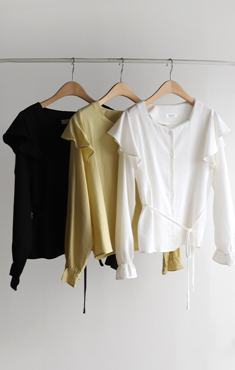 부드럽고 가벼운 코튼 소재에 여성스러운 디테일이 더해져 리린의 감성 가득~느껴지는 LIN.MADE 블라우스 보여드려요! 요 블라우스, 다가오는 시즌에 꼬옥 소장해야할 필수 아이템인데요~ 넥부분은 살짝 각진 브이 스퀘어 쉐입으로 여리여리한 무드가 느껴지구요 어깨부분에는 프릴 날개 디테일이 더해져서 여성스럽고 사랑스러운 무드가 물씬 느껴져요ㅎㅎ 소매 끝단은 밴딩&프릴 디테일로 사소한 부분까지 디테일을 챙겨주었고 허리부분에는 탈부착 가능한 스트랩 세트 구성으로 투웨이 연출이 가능해 하나의 아이템으로 다양한 스타일링이 가능한 효자템이랍니다! 하나 소장하시면 후회없을 블라우스라 데님&스커트 등 다양한 하의류와 함께 예쁘게 즐겨주세요~!!