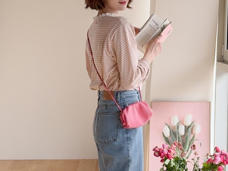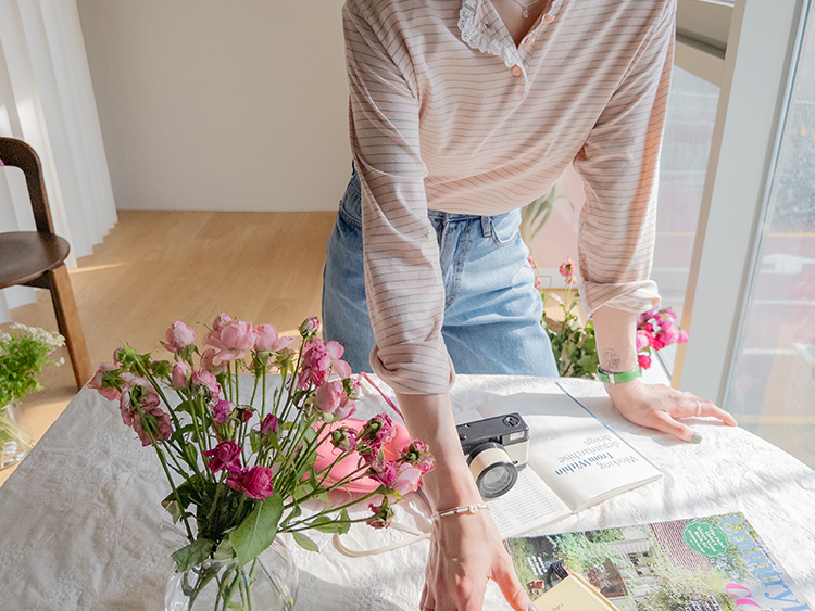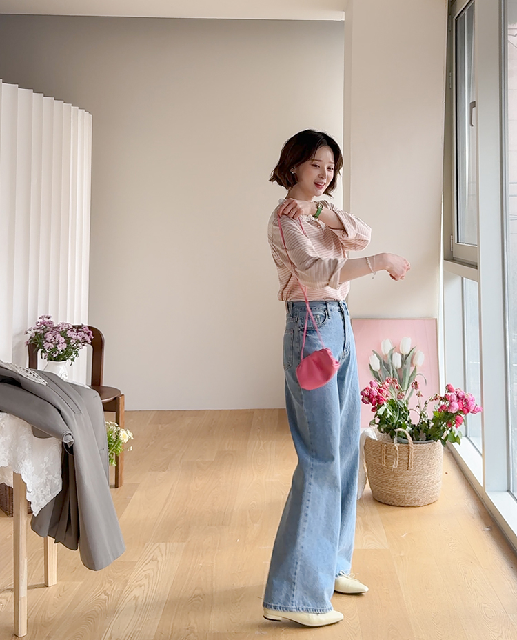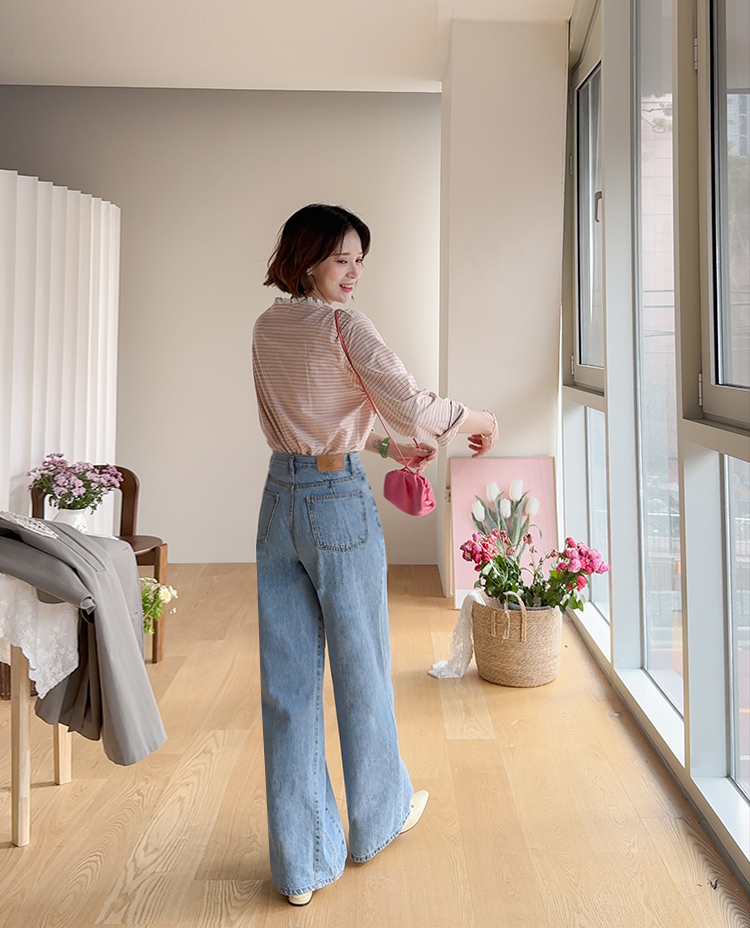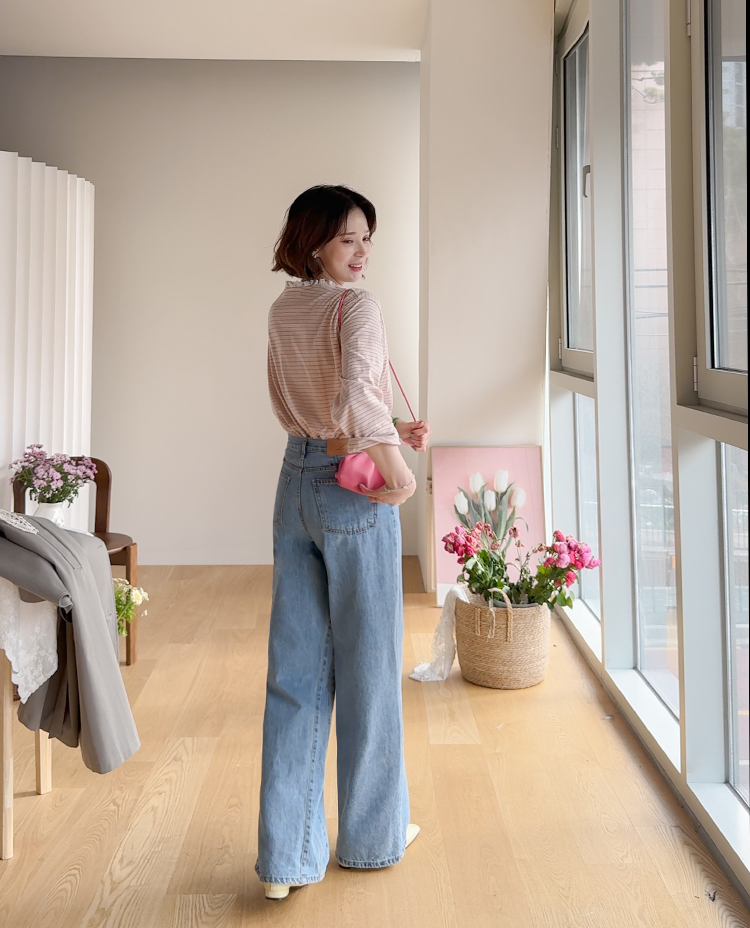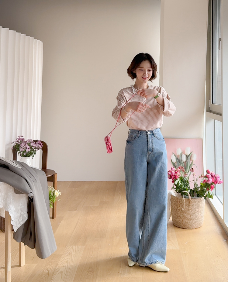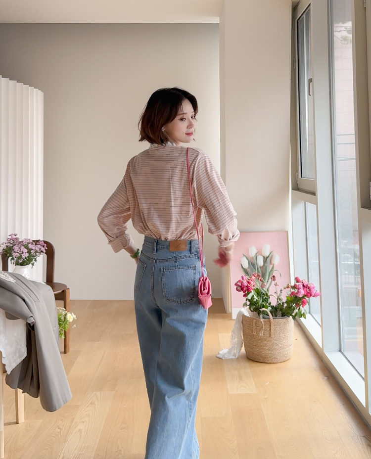 잔잔한 스트라이프 패턴 위에 넥 라인을 따라 더해진 레이스 트리밍이 러블리한 포인트가 되어주는 티셔츠예요 ^^ 프론트 버튼 디테일로 밋밋함 없이 은근한 포인트를 더해주고 클로징/오픈 연출에 따라 분위기 조절도 가능해요 전체적으로 깔끔한 실루엣이라 단독으로 입어도 예쁘고 가디건이나 니트 안에 레이어드해도 딱 좋아요