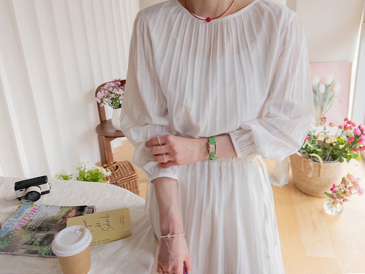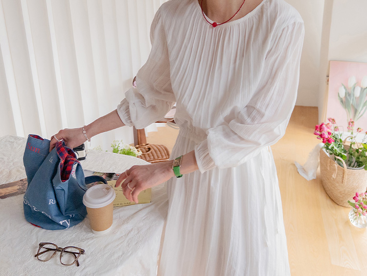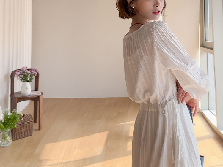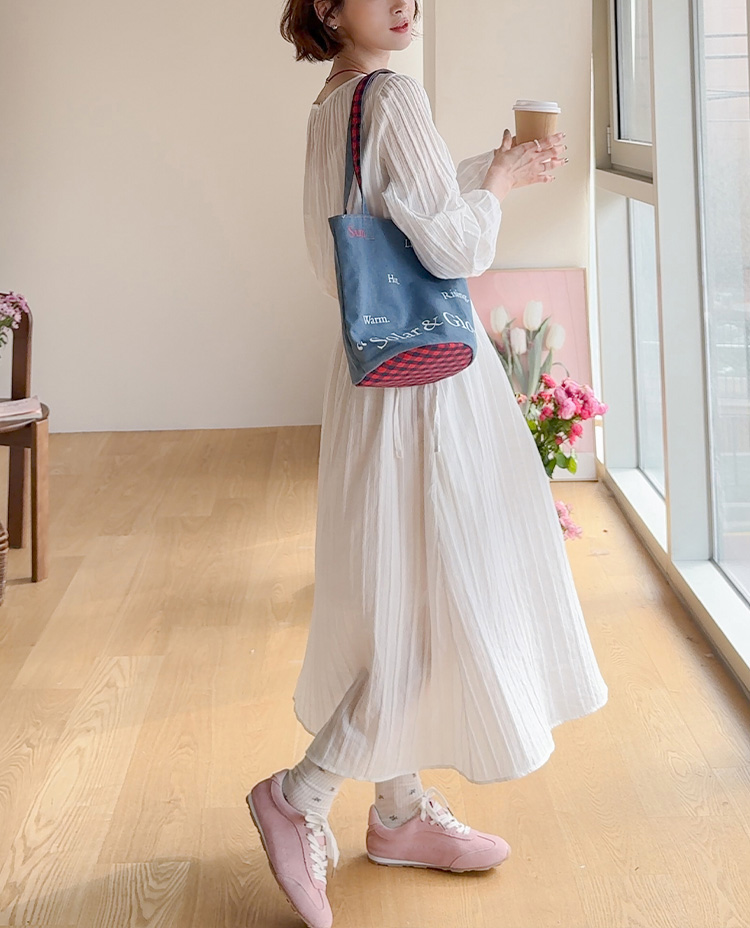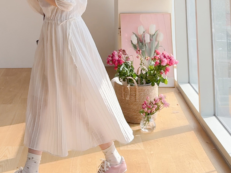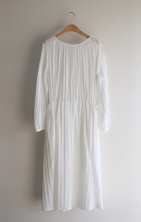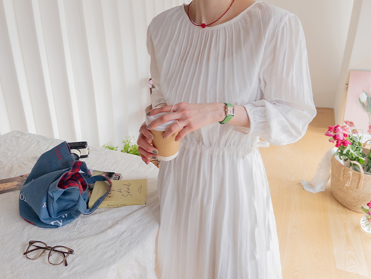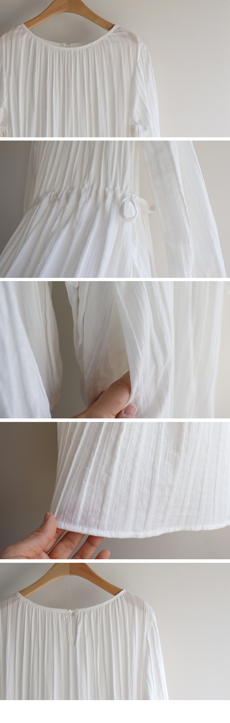 여리여리한 분위기가 자연스럽게 살아나는 플리츠 롱 원피스 소개해드려요~^.^ 전체적으로 세로 플리츠 텍스처가 잡혀 있어 시각적으로 라인이 길어 보이고 체형을 자연스럽게 커버해주면서 부담 없이 슬림한 실루엣을 완성해줘요♥ 허리에는 스트링 디테일이 더해져 내 체형에 맞게 조절이 가능해 핏을 살짝 잡아 입으면 여성스럽게, 루즈하게 풀어주면 내추럴한 무드로 연출할 수 있어요ㅎㅎ 넥 라인은 깔끔한 라운드 디자인으로 단정하면서도 과하지 않아 단독으로 입어도, 이너로 레이어드해도 부담 없이 잘 어울린답니다 . 소매는 은은하게 볼륨감이 느껴지는 디자인으로 손목 라인을 여리하게 잡아주고 전체적인 분위기를 한층 더 부드럽게 만들어줘요ㅎㅎ 단독으로는 물론 가디건, 니트, 자켓과 레이어드하면 계절감에 맞게 다양한 코디가 가능해 활용도가 정말 높은 아이템이에요 . 데일리룩부터 하객룩, 데이트룩까지 차분하고 여성스러운 무드의 원피스로 소장 추천드려요♥