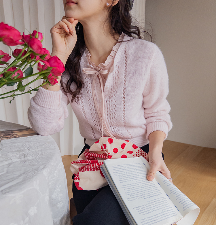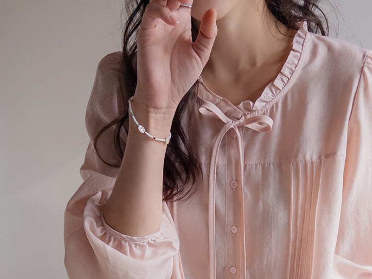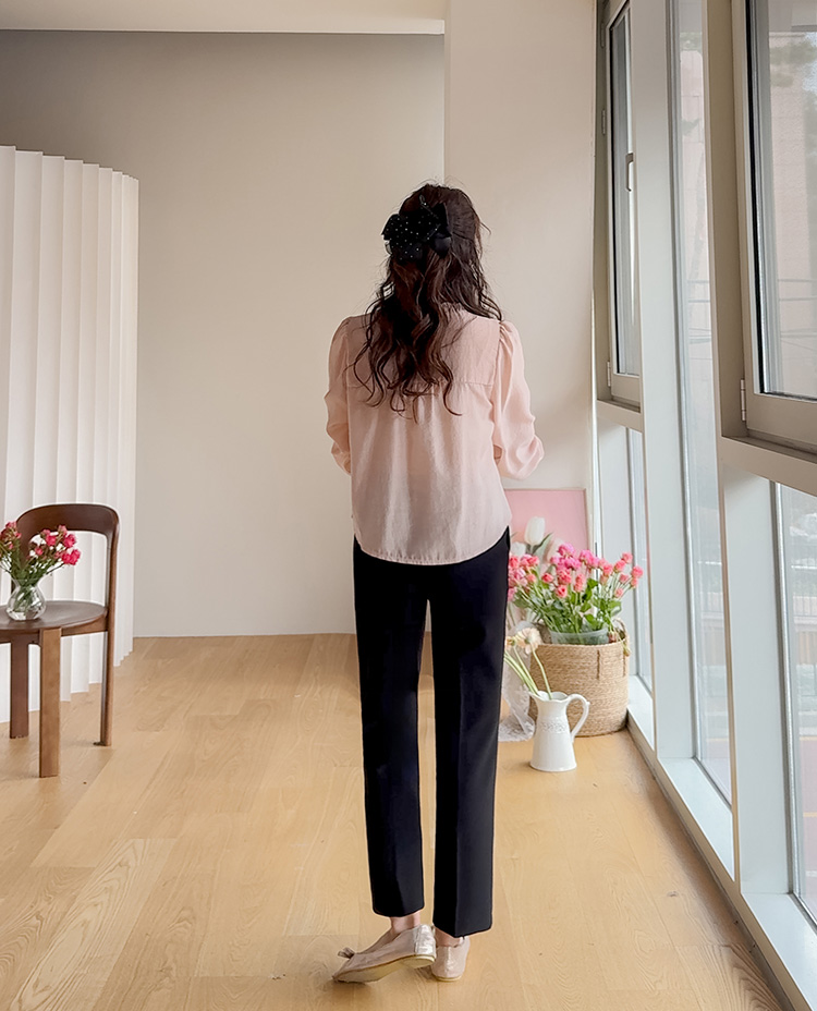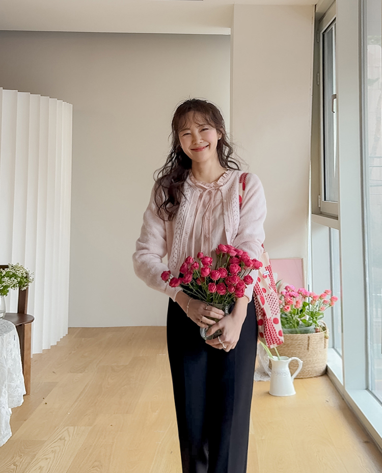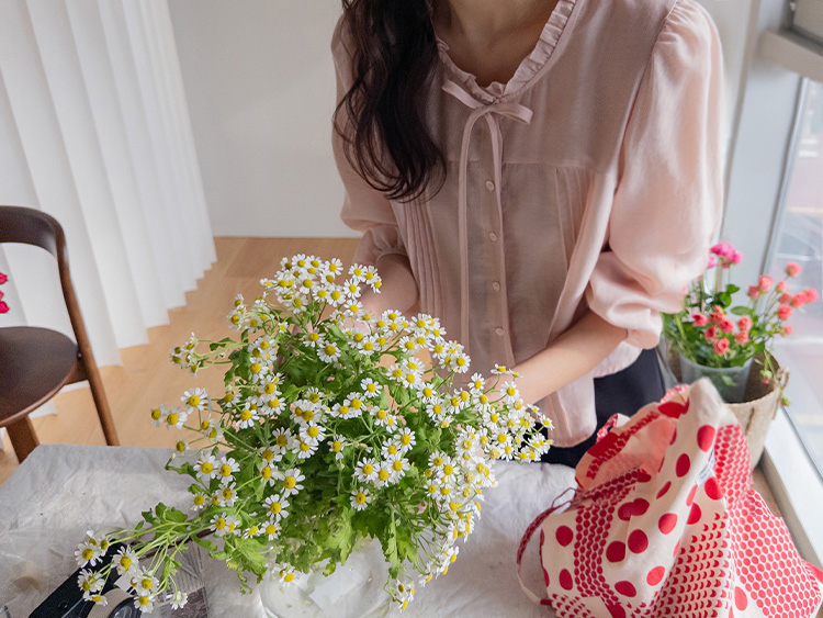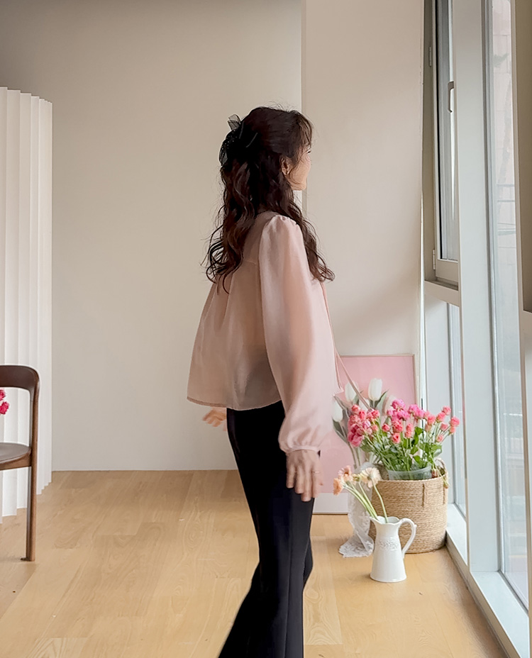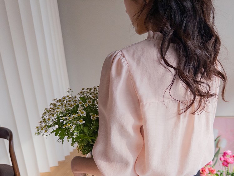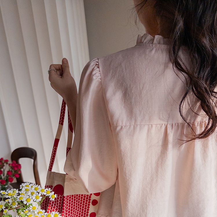 디테일이 살아있는 로맨틱 블라우스 소개드려요 ^~^ 넥라인 프릴과 리본 디테일이 더해져 입는 순간 분위기가 확 살아나는 아이템이에요! 전면 세로 핀턱 디테일이 들어가 있어 상체 라인을 슬림하고 길어 보이게 연출해주고, 과하지 않은 셔링으로 볼륨 소매가 여리여리한 실루엣을 완성해줘요~ 은은하고 부드러운 컬러감으로 얼굴빛을 화사하게 밝혀주어 데이트룩, 출근룩, 모임룩까지 모두 잘 어울려요 :) 스커트, 슬랙스, 데님 어디에나 매치하기 좋아 손이 자주 갈 블라우스랍니다 ♥ 굿초이스 해주세요!