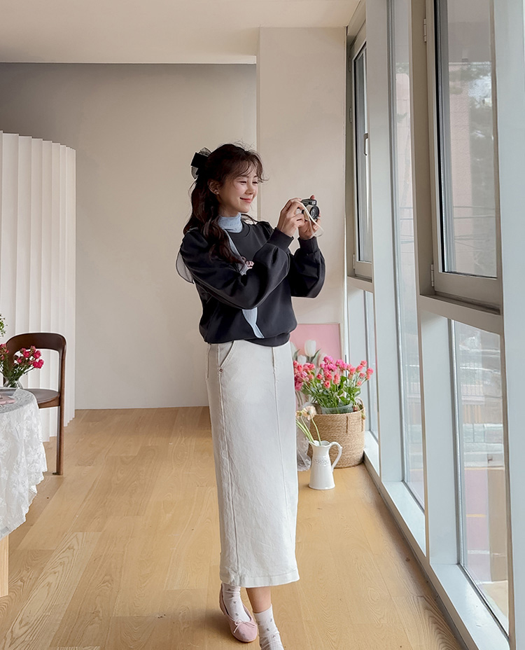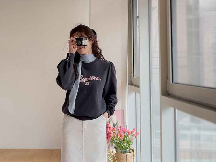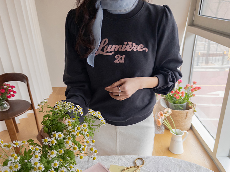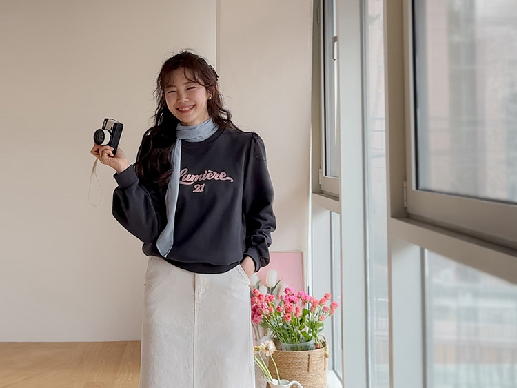 심플한 디자인에 프론트 레터링이 포인트가 되어 데일리로 손이 자주 가는 맨투맨이에요. 과하지 않은 핏으로 부해 보이지 않으면서도 편안하게 입기 좋아요. 슬랙스, 데님, 스커트까지 다양한 하의와 매치하기 쉬워 꾸안꾸 스타일로 활용도 높은 아이템이에요.