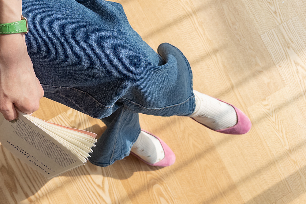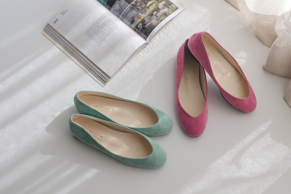 화사한 컬러감이 매력적인 플랫슈즈예요 :) 블랙, 브라운은 기본으로~ 민트와 핑크는 포인트 주기 딱 좋구요♡ 둥근 앞코 디자인으로 발볼이 편안하고 낮은 굽이라 장시간 착화에도 부담이 적답니다~ 스커트, 데님, 원피스 어디에나 데일리하게 매치하기 좋은 슈즈예요♥