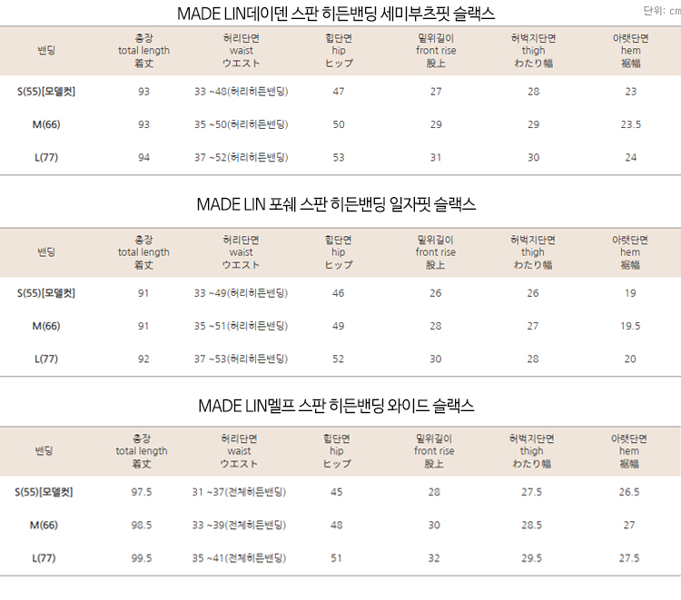 지난 시즌 큰 사랑을 받았던 슬랙스! 봄 시즌을 맞아 간절기 원단으로 보여드려요~! 짱짱한 신축성이 더해져 하루종일 착용해도 넘 편하고 예쁜 슬랙스인데요 무려 스판이 8% 함유된 원단으로 치즈처럼 쭈욱 늘어나는 신축성이 돋보이는 원단이에요*.* 링클프리로 구김도 없어서 하루종일 착용해도 핏 흐트러짐 없고 편안하게 착용되는 마법의 슬랙스랍니다 ㅎㅎ 또한 허리는 전체 히든밴딩으로 되어있는데요 일반적인 허리 밴딩보다 넓은 밴딩을 사용해주어서 배 부분의 군살을 말끔하게 커버해주어요! 부츠컷 실루엣으로 다리라인도 늘씬하고 말라보이고 어느 체형에나 호불호없이 누구나 즐기기 좋은 실루엣이라 강추! 이미 많은 고객님들의 후기로 예쁨과 편함을 인정받은 아이템인만큼 매일매일 함께하기 좋은 데일리 슬랙스로 꼬~옥 추천드려요🤍
