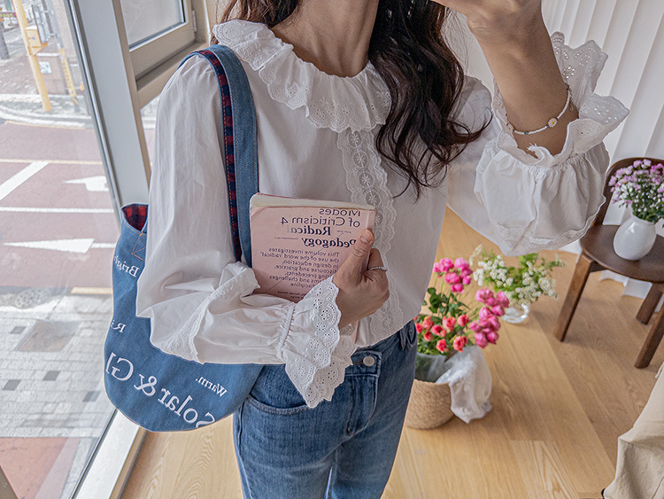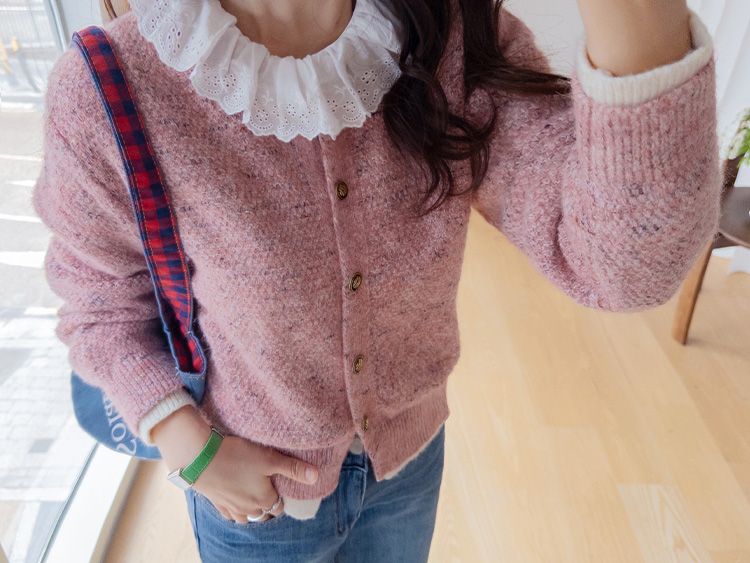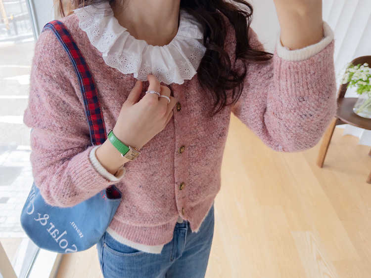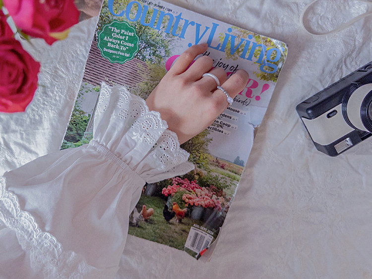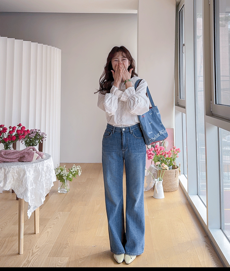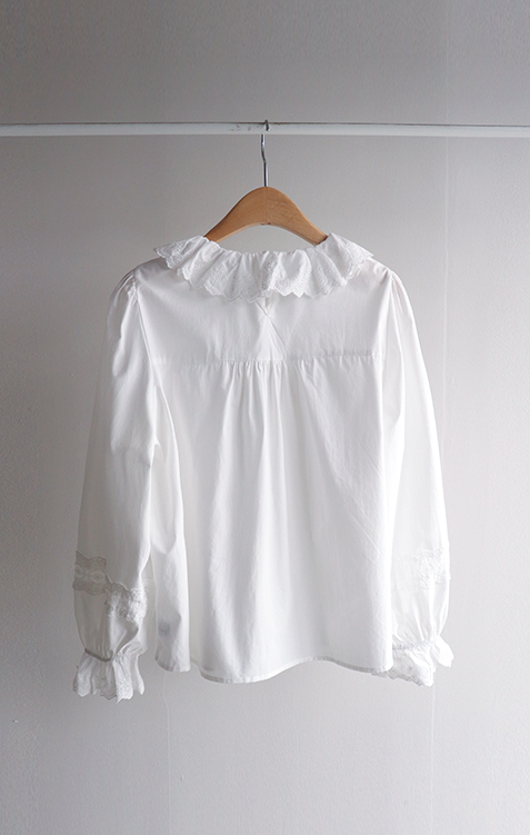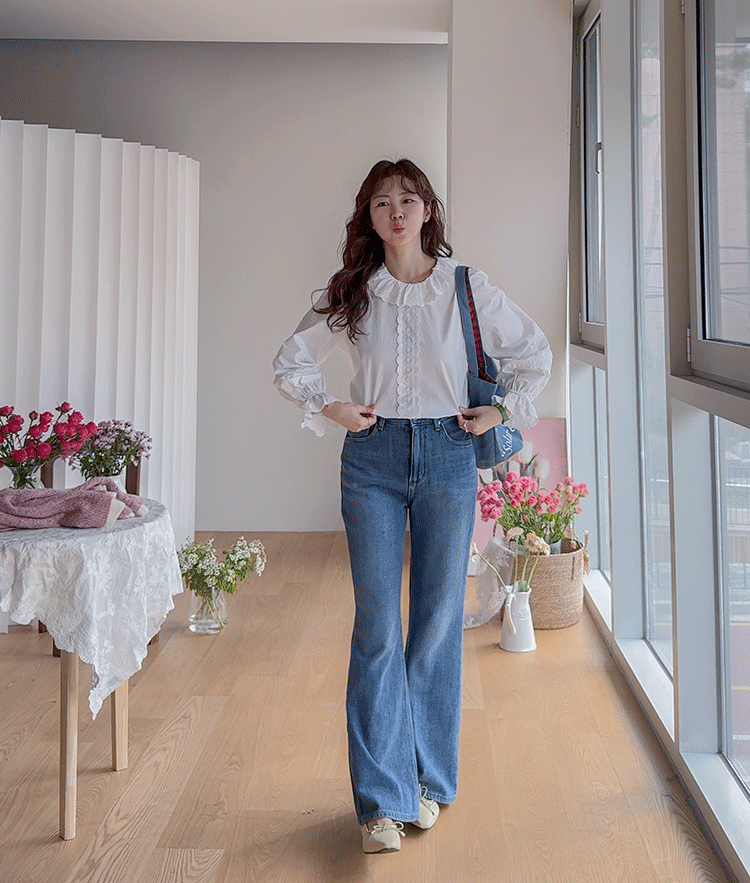 은은하게 퍼지는 라운드 핏에 풍성한 레이스 카라가 얼굴을 화사하게 밝혀주는 아이에요 :) 앞 중심을 따라 더해진 레이스 라인이 시선을 세로로 정리해줘서 상체가 한층 슬림해보이구요. 소매 끝은 밴딩으로 잡아주고 밑단 레이스 프릴로 러블리함을 더해 손짓 하나에도 분위기가 살아나요♡ 스커트, 데님, 원피스 안 이너로까지 여성스럽게 매치하기 좋은 블라우스랍니다.