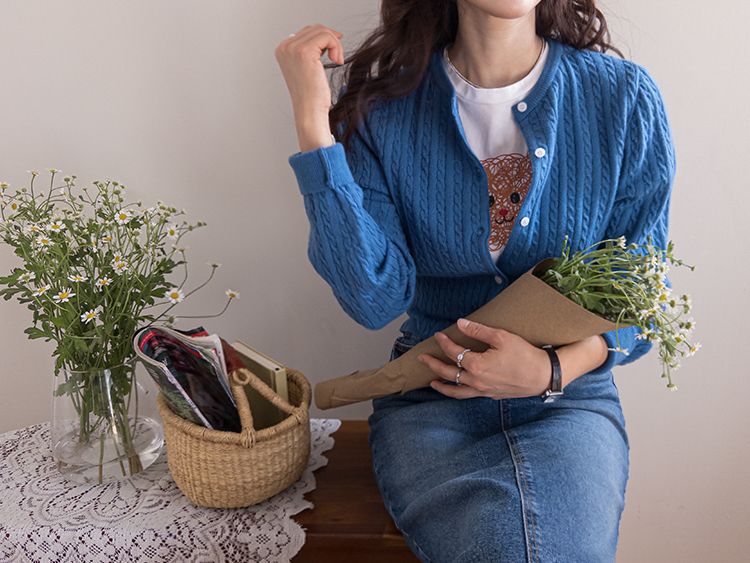 首页 > ニット > カーディガン > フラフィンベーシック春春ケーブルカーディガン [size:F(55~66)]