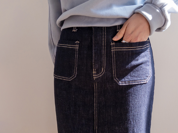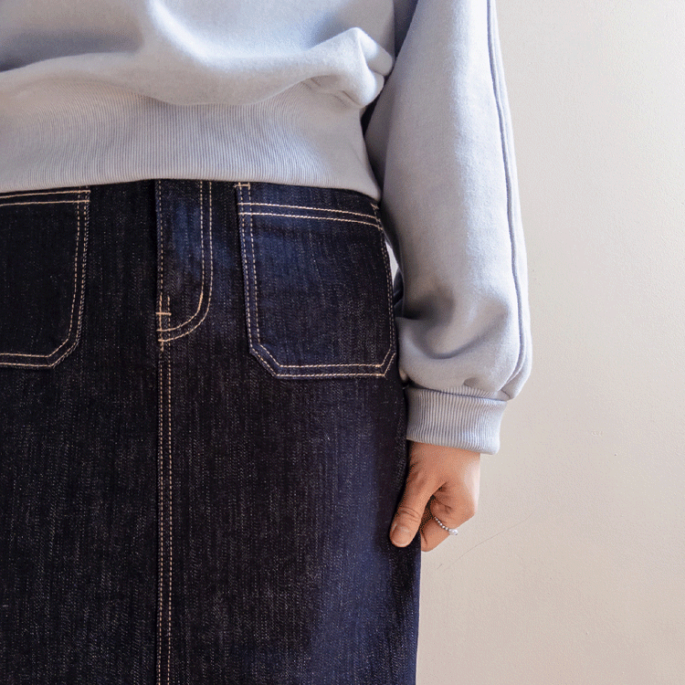 데일리하게 즐기기 좋은 논페이드 데님 스커트 소개해드려요 :) 이염 걱정을 덜어준 논페이드 데님 소재로 부담 없이 매치하기 좋은 아이템이에요. 프론트에는 투포켓 디테일을 더해 캐주얼한 무드를 살려주면서 포인트가 되어줘요! 중앙 슬릿 디테일을 더해 활동성을 높여주어 답답함 없이 편안하게 착용할 수 있답니다♡ 마치 안 입은 듯 편안한 착용감으로 데일리하게 즐기기 좋으며 베이직한 디자인으로 어디에나 휘뚤~마뚤 입기 좋은 스커트로 추천:) ♥