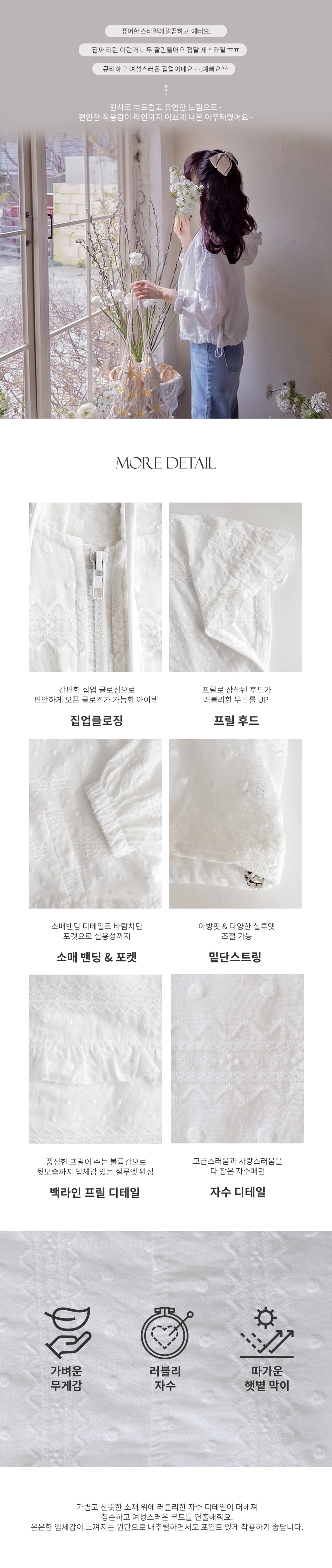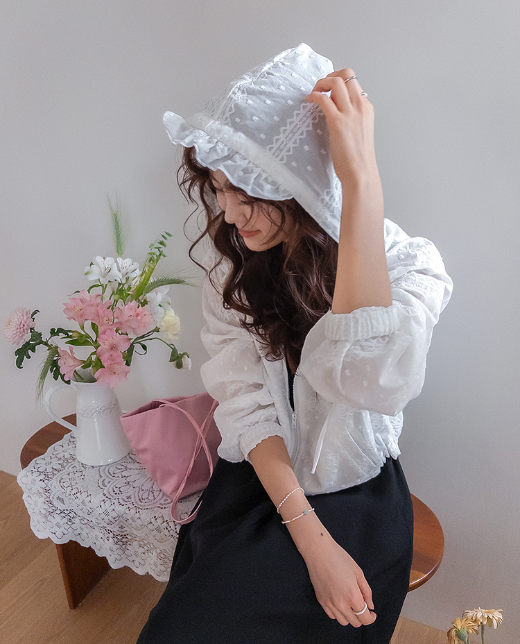 - 首页 > 春の準備に必要な💗軽いアウター🌸 > [LABEL] ボンシャリングフード ドット刺繍 ラブリー 軽い集業ジャンパー [size:F(55~66)]
