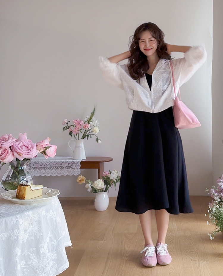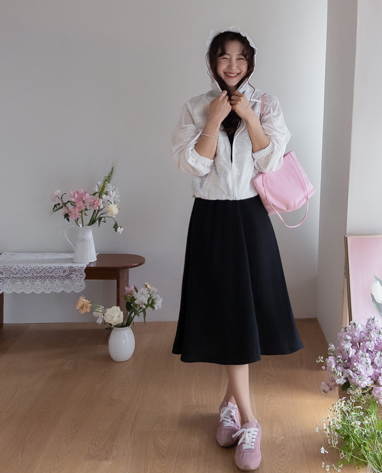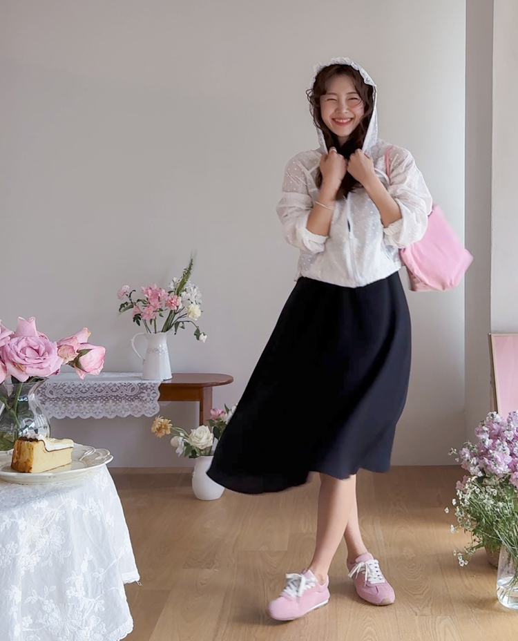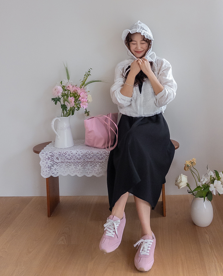 바지 치마 다 잘 어울려서~ 편안하게 즐기시기 좋으신 아우터였답니다~