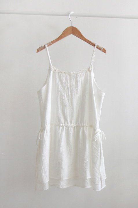 [裏地ポリ][肩紐調節可能][両側にウエスト紐調節してリボン縛りサイズ調節可能][レイヤードに良いナッシュトップ]