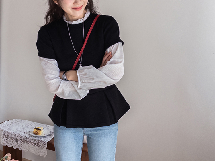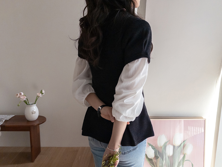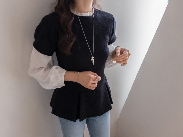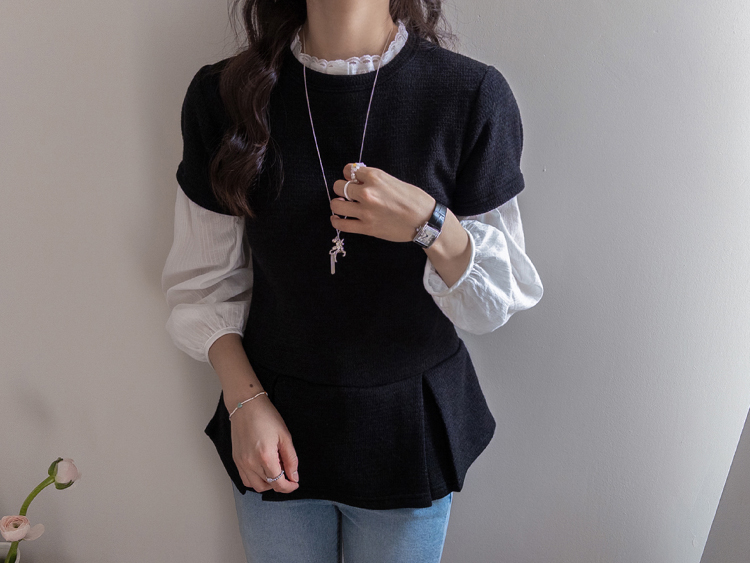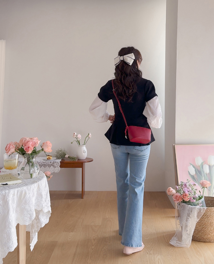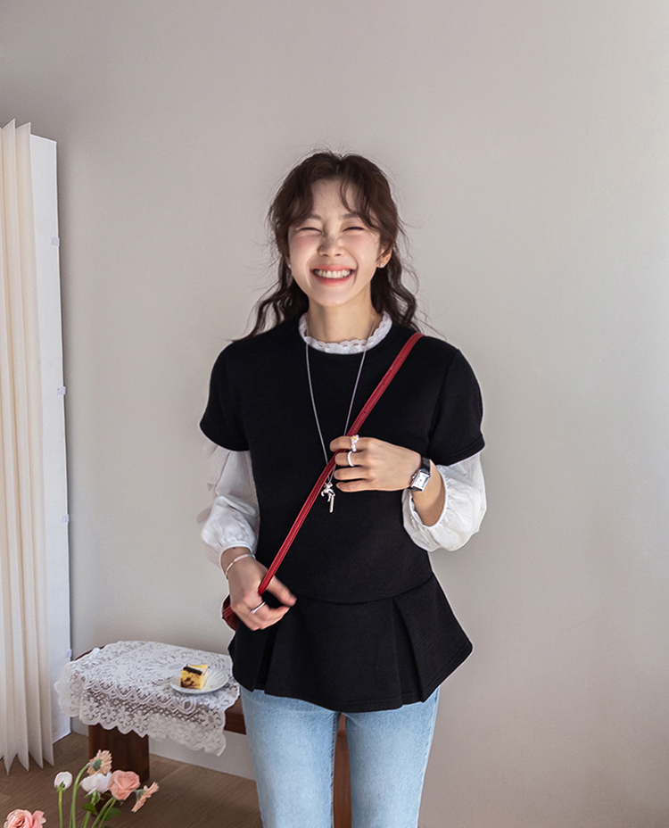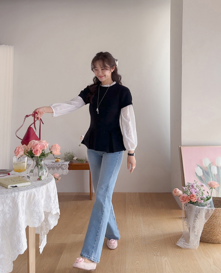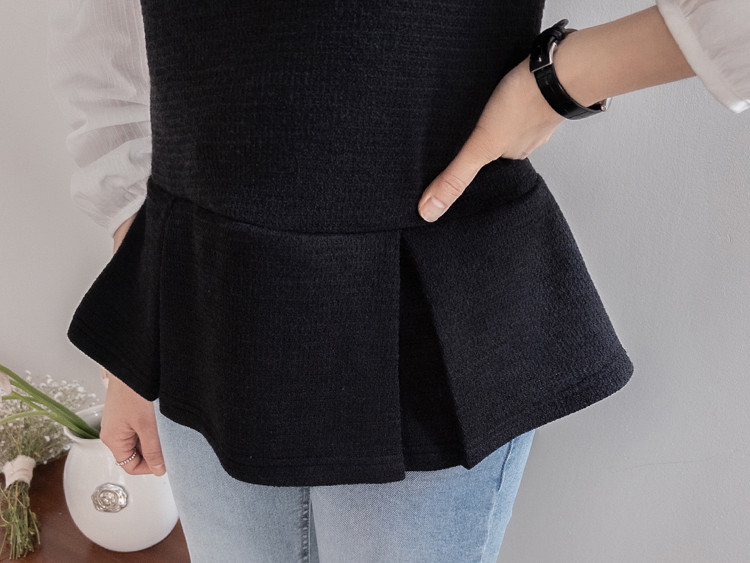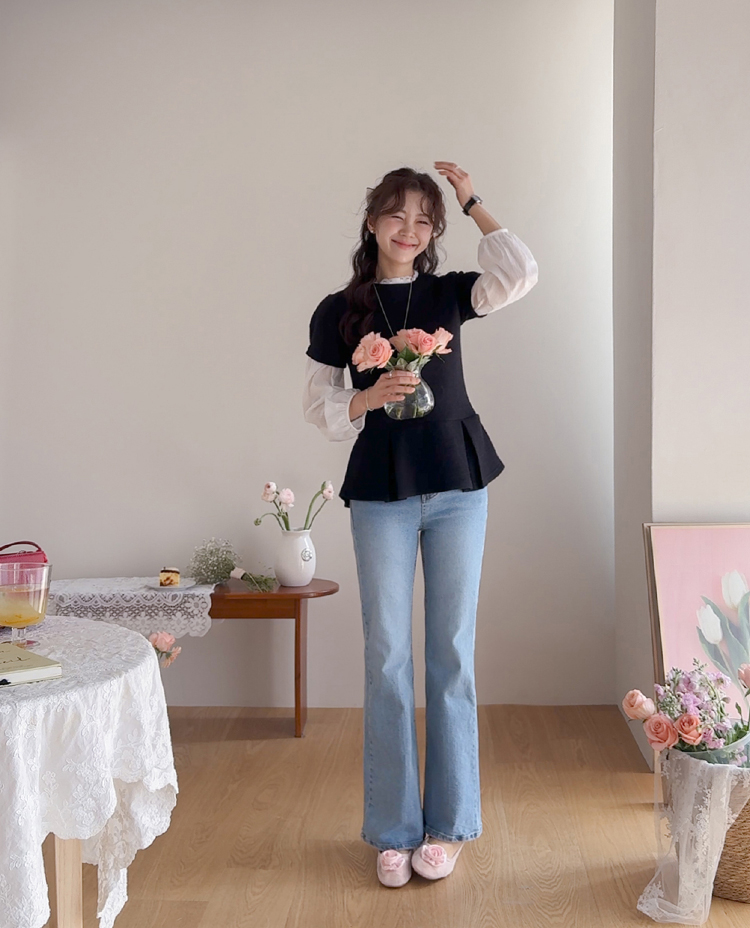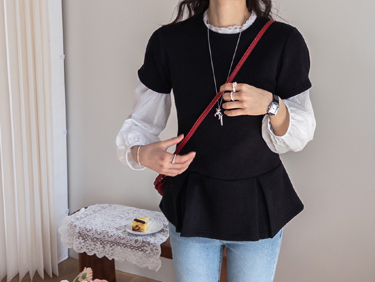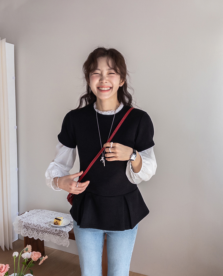 은은하게 여성스러운 분위기를 연출해주는 페플럼 니트 탑 소개드려요 :) 군더더기 없이 깔끔한 라운드넥 디자인에 전체적으로 베이직한 무드라 데일리로 부담 없이 즐기기 좋은 아이템이에요*.* 허리선 아래로 자연스럽게 퍼지는 페플럼 플레어 디테일이 더해져 허리는 슬림해 보이면서~ 골반과 힙 라인은 자연스럽게 커버해주어 여리하면서도 균형 잡힌 실루엣을 연출해준답니다ㅎㅎ 전체적으로 적당하게 잡아주는 핏으로 바디에 너무 타이트하게 붙지 않아 편안하게 착용 가능하구요! 잔잔한 조직감이 느껴지는 니트 소재로 밋밋하지 않으면서도 고급스러운 텍스처가 포인트가 되어주고, 과하게 두껍지 않은 두께감이라 단독은 물론 아우터 속 이너로도 활용하시기 좋아요 :) 소매는 짧은 기장감으로 깔끔하게 떨어져 단정하면서도 캐주얼한 무드를 더해주었구요, 밑단 플레어 라인이 자연스럽게 퍼지면서 움직일 때마다 더욱 예쁜 실루엣을 완성해줘요♡ 슬랙스, 데님, 스커트 어디에나 잘 어울려 데일리룩은 물론, 하객룩으로 강추!! 다양하게 활용하기 좋은 아이템이라 추천드릴게요✨ 하나쯤 소장하시면 꾸안꾸 느낌으로 자주 손이 가실 거예요 ♡