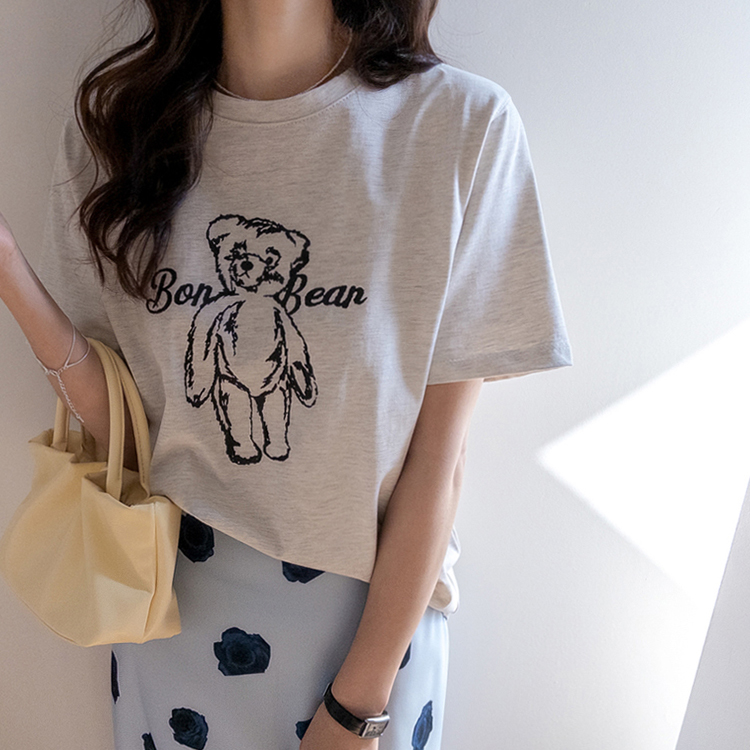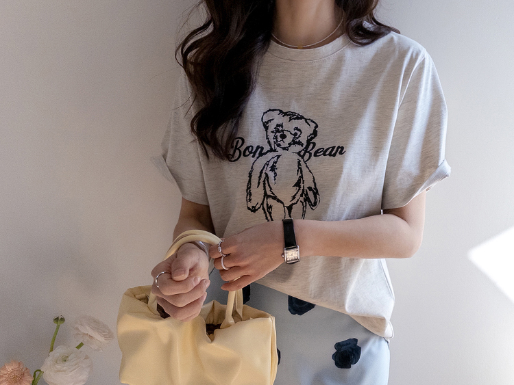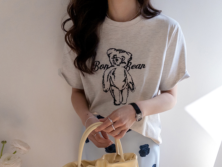 귀여운 베어 프린팅이 돋보이는 프린팅 티셔츠 보여드려요 :) 베어 프린팅과 레터링 디테일이 룩에 자연스럽게 포인트를 더해주며 캐주얼한 분위기를 연출해주는 아이템이에요! 베이직한 실루엣으로 제작되어 단독으로 가볍게 입어도 좋고 가디건이나 자켓 안에 매치해도 잘 어울린답니다^.^ 데님, 스커트, 팬츠 어디에나 잘 어울려 데일리로 휘뚤마뚤 입기 좋은 프린팅 티셔츠로 추천드릴게요 :) ♥