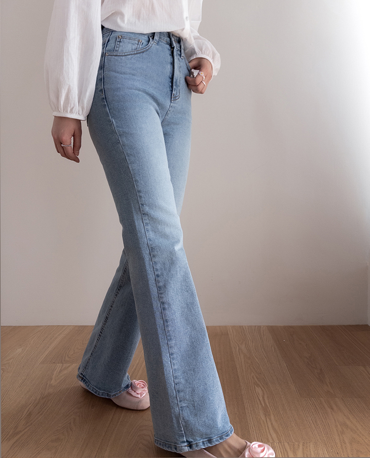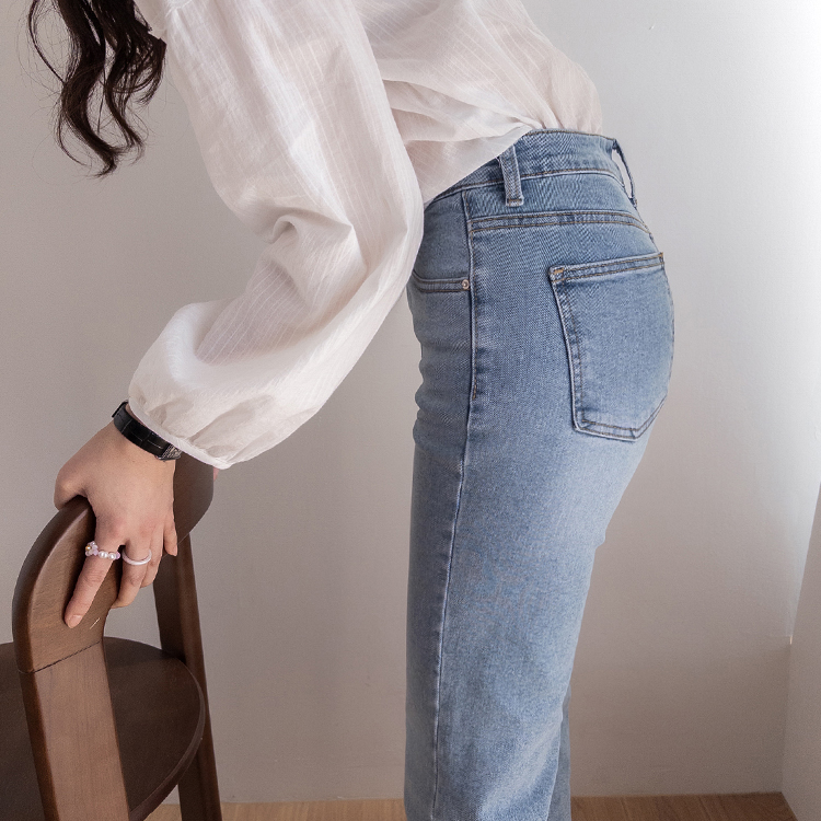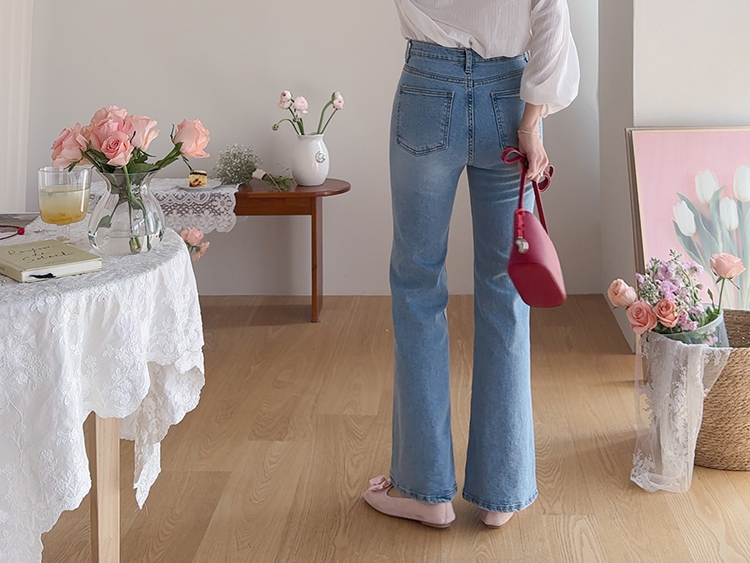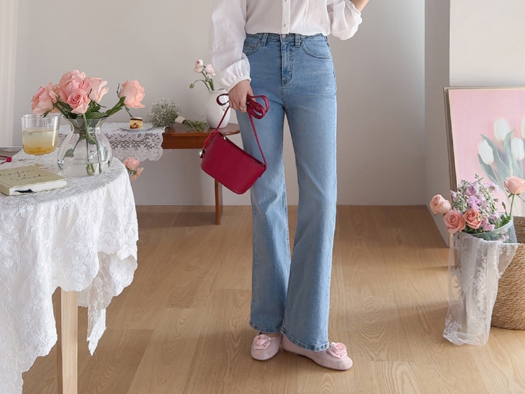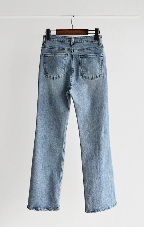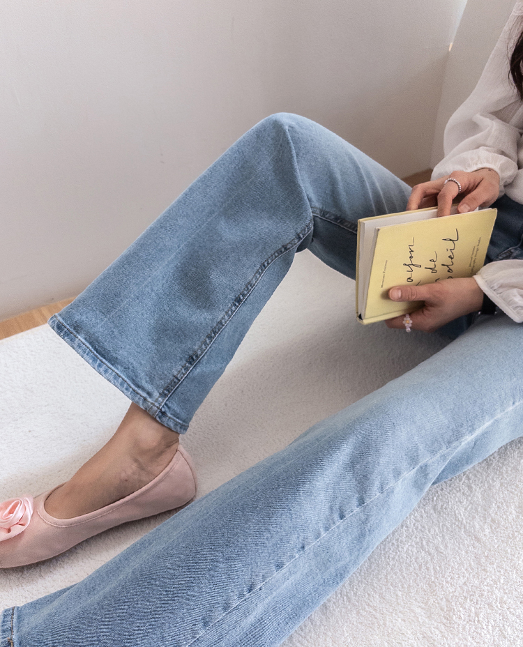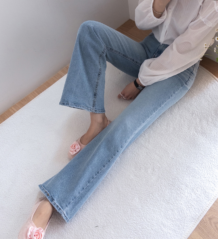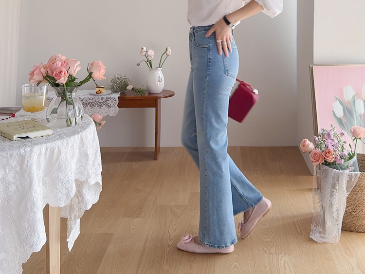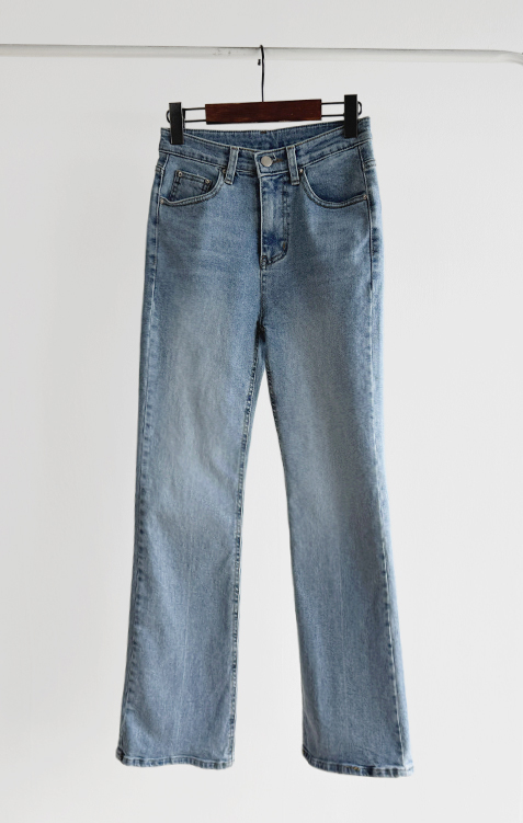 데일리로 활용하기 좋은 부츠컷 데님팬츠 소개드려요 ^^ 허리부터 허벅지까지는 슬림하게 잡아주고 무릎 아래로 자연스럽게 퍼지는 부츠컷 라인으로 다리를 더욱 길고 곧아 보이게 연출해주는 팬츠예요. 밝은 연청 컬러감으로 봄 시즌에 특히 잘 어울리며 어떤 상의와 매치해도 산뜻한 분위기를 더해줍니다. 신축성이 있는 스판 혼방 데님 소재로 활동 시에도 편안하게 착용할 수 있어 데일리 팬츠로 부담 없이 즐기기 좋아요. 블라우스, 니트, 티셔츠 등 다양한 아이템과 매치하기 쉬워 코디 활용도가 높은 데님팬츠로 추천드릴게요 ♡ 골반 라인이 살짝 슬림하게 잡히는 핏으로, 체형에 따라 타이트하게 느껴지실수 있습니다. 여유 있는 착용을 원하시는 분들은 한 사이즈 업 추천 드려요~