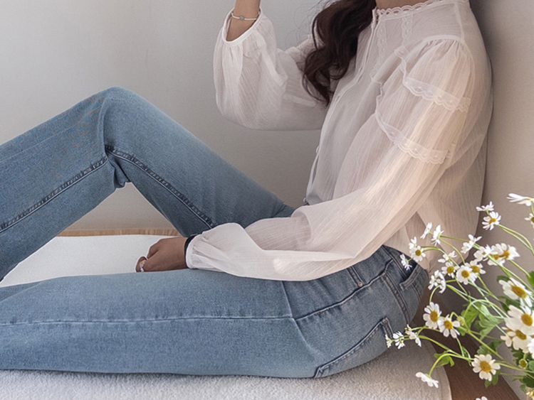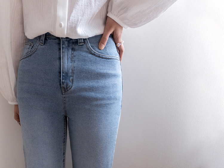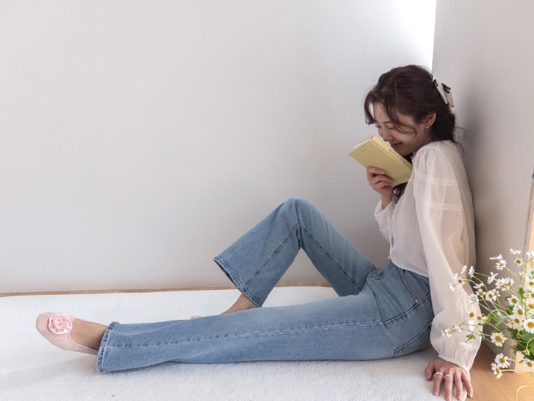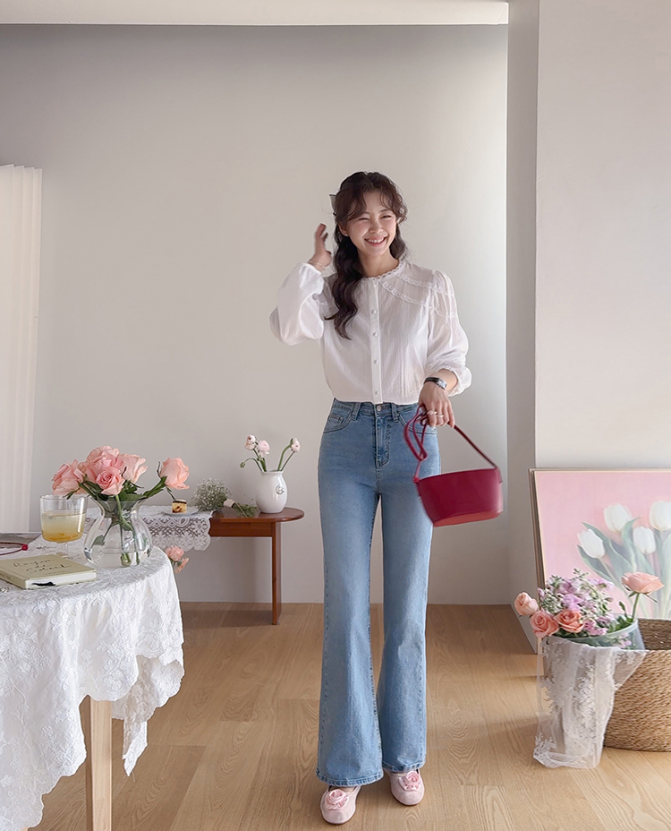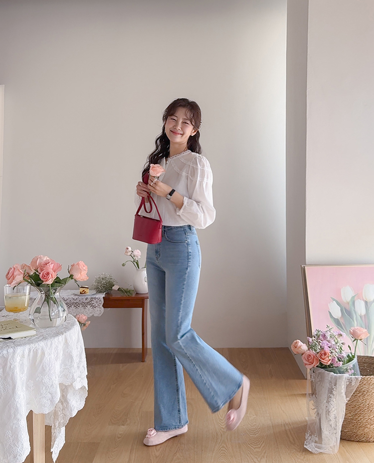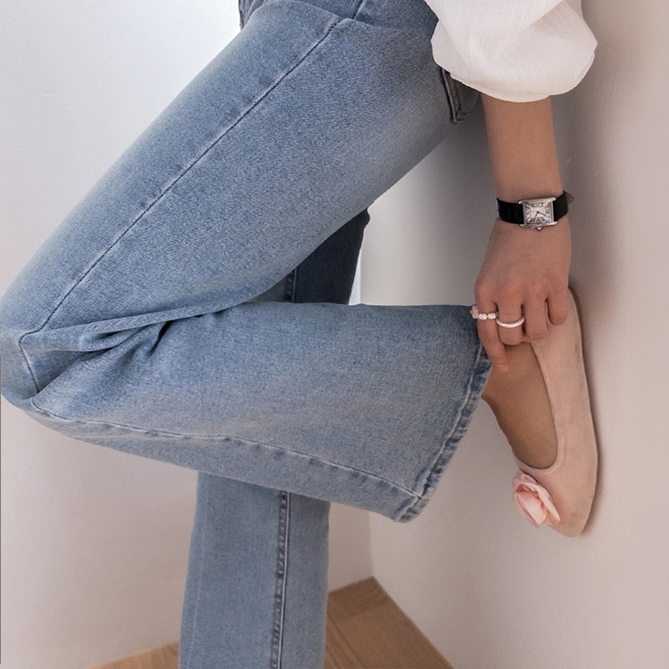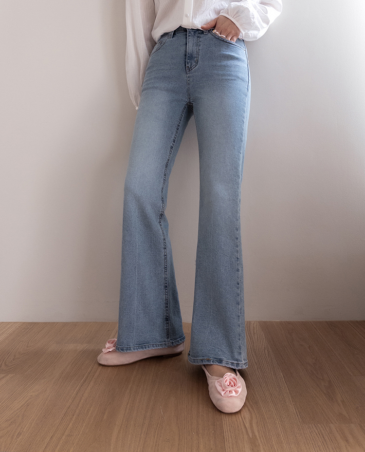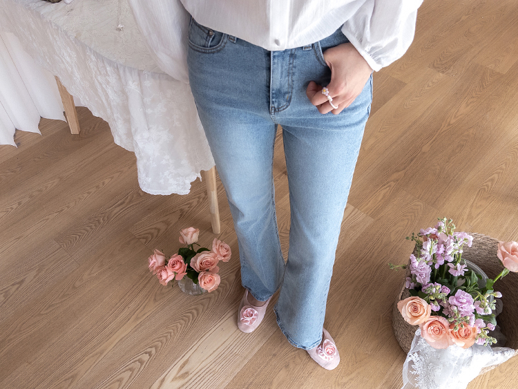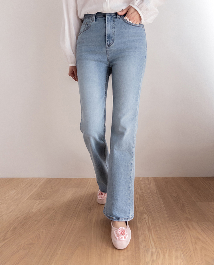 데일리로 활용하기 좋은 부츠컷 데님팬츠 소개드려요 ^^ 허리부터 허벅지까지는 슬림하게 잡아주고 무릎 아래로 자연스럽게 퍼지는 부츠컷 라인으로 다리를 더욱 길고 곧아 보이게 연출해주는 팬츠예요. 밝은 연청 컬러감으로 봄 시즌에 특히 잘 어울리며 어떤 상의와 매치해도 산뜻한 분위기를 더해줍니다. 신축성이 있는 스판 혼방 데님 소재로 활동 시에도 편안하게 착용할 수 있어 데일리 팬츠로 부담 없이 즐기기 좋아요. 블라우스, 니트, 티셔츠 등 다양한 아이템과 매치하기 쉬워 코디 활용도가 높은 데님팬츠로 추천드릴게요 ♡ 골반 라인이 살짝 슬림하게 잡히는 핏으로, 체형에 따라 타이트하게 느껴지실수 있습니다. 여유 있는 착용을 원하시는 분들은 한 사이즈 업 추천 드려요~
