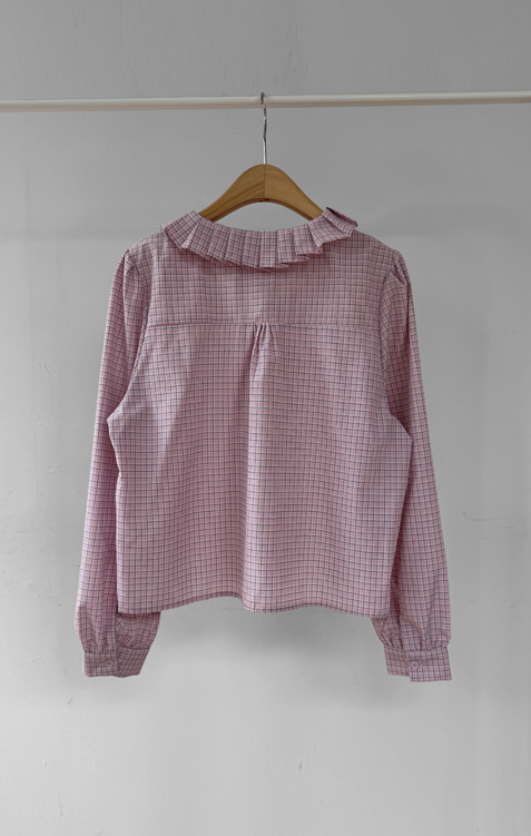 ローセラプリーツラッフルカラーボリューム袖チェックピンタックブラウス [size:F(55~66)]
