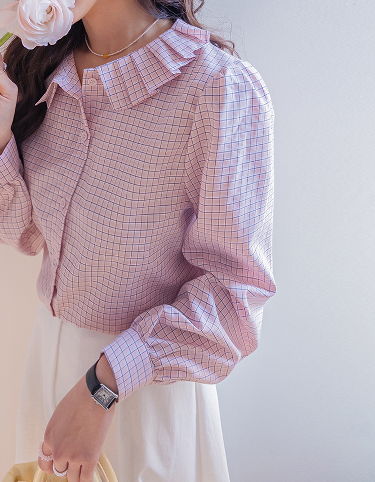 首页 > ブラウス > ブラウス > ローセラプリーツラッフルカラーボリューム袖チェックピンタックブラウス [size:F(55~66)]