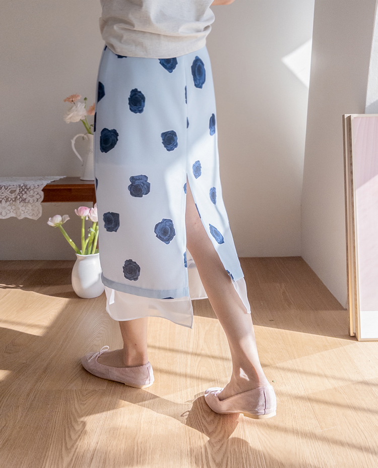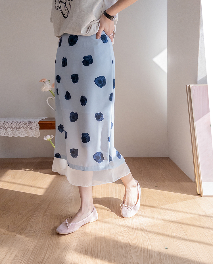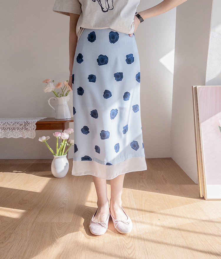 ラビエンブルーローズシフォン裾ロングスカート [size:F(55~66盤)]