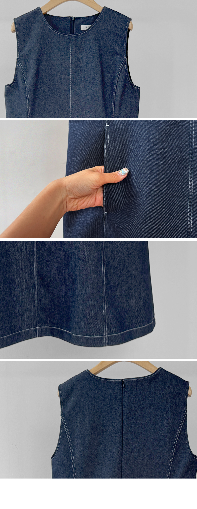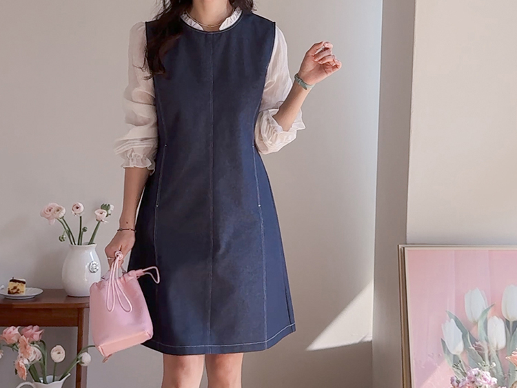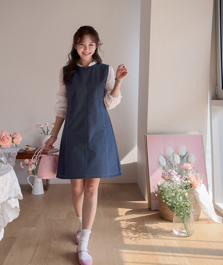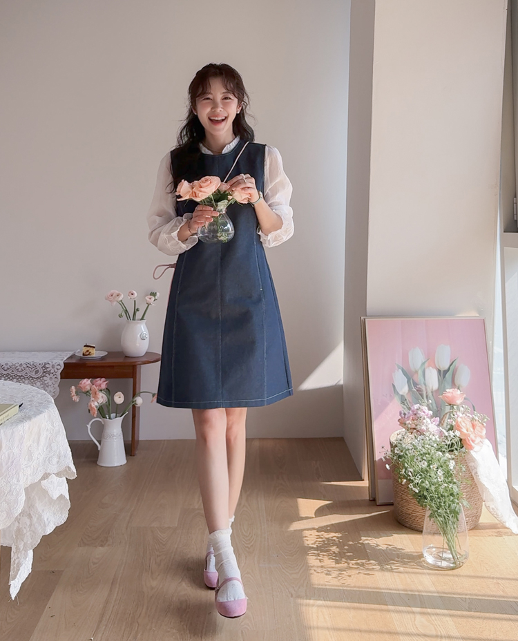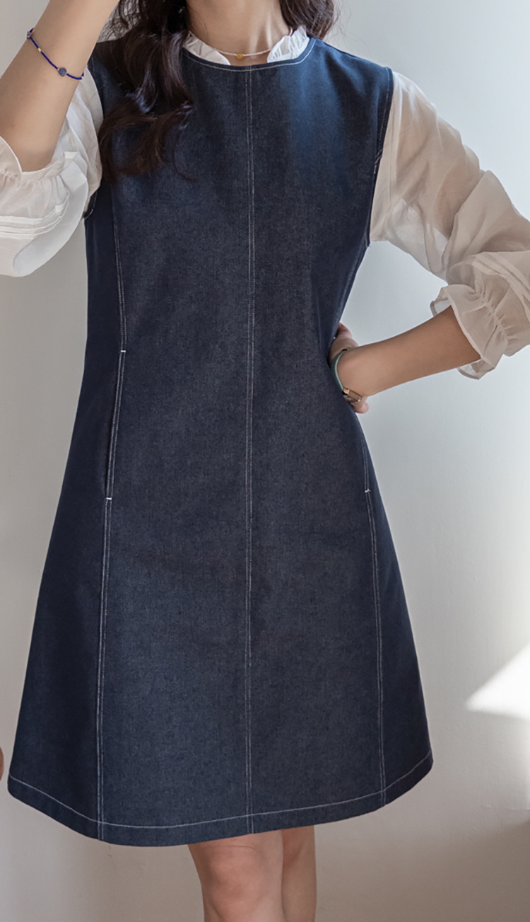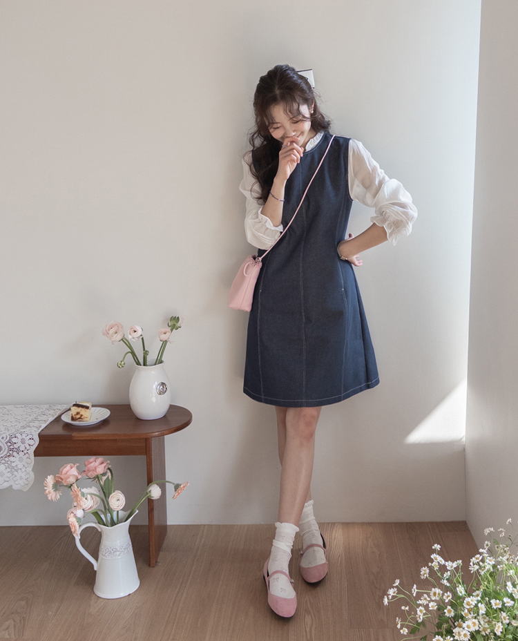 발랄하면서도 데일리하게 즐기기 좋은! 린메이드 데님 원피스 소개드려요 :) 군더더기 없이 깔끔하게 떨어지는 디자인으로 누구나 부담 없이 입기 좋은 아이템이에요*.* 전체적으로 여유 있게 떨어지는 A라인 실루엣이라 체형을 자연스럽게 커버해주면서 단정하면서도 세련된 분위기를 연출해준답니다ㅎㅎ 적당히 탄탄한 데님 소재로 핏이 흐트러지지 않고 깔끔하게 유지되구요, 과하게 두껍지 않아 계절에 구애 없이 다양하게 활용하시기 좋아요! 프론트 라인 & 포켓에 더해진 스티치 디테일이 심플한 디자인에 은은한 포인트가 되어주고~ 전체적으로 밋밋하지 않게 완성도를 높여주었어요^.^ 양 사이드에는 포켓 디테일이 더해져 실용성까지 챙겨주었구요~ㅎ 데일리로 편하게 즐기기에도 딱이에요! 단독으로는 물론, 셔츠나 티셔츠와 레이어드해주셔도 좋고 자켓이나 가디건과 함께 매치하면 더욱 다양한 분위기로 연출 가능해요✨ 하나쯤 소장하시면 데일리룩, 출근룩, 주말룩까지 활용도 높게 입어지실 거라 추천드릴게요♡