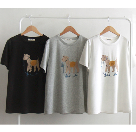 シーズン耳よみ刺繍ドッグチュッグススパンリラックスティー [size:F(55~66)]