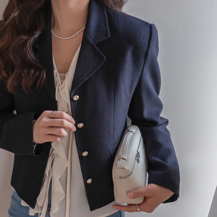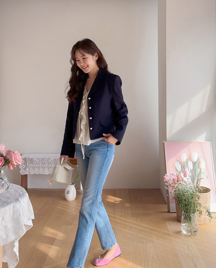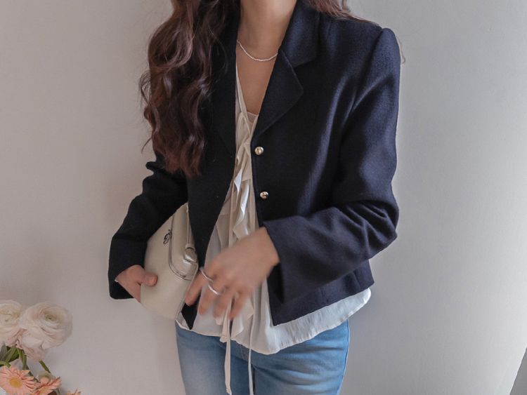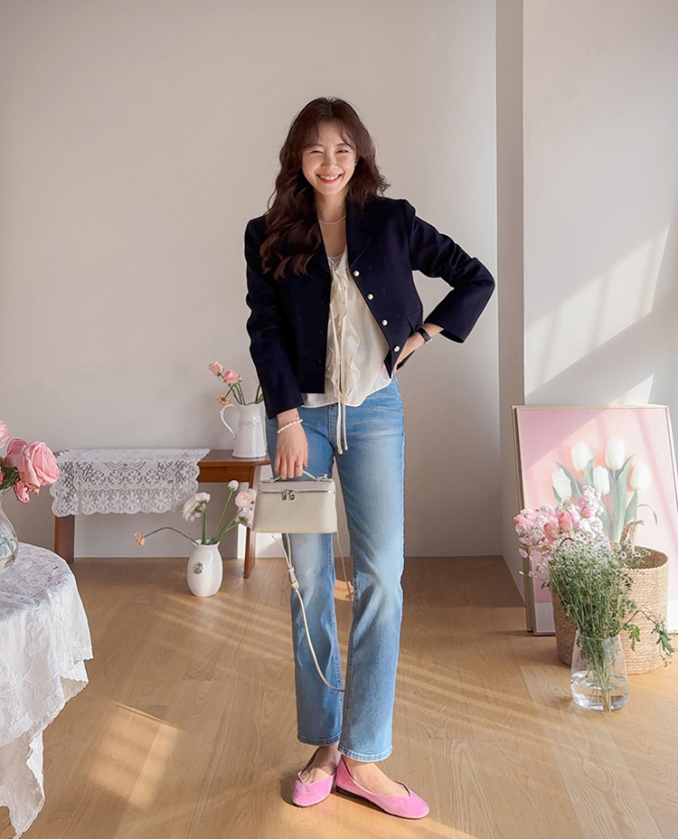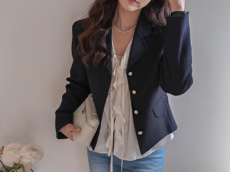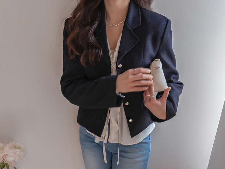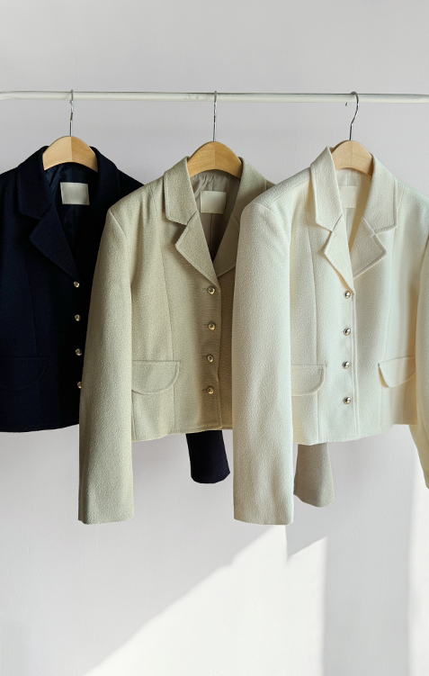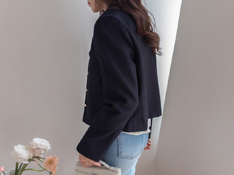깔끔한 라인의 크롭 기장에 클래식한 무드의 금장 버튼이 더해져 가볍게 걸쳐도 세련된 분위기가 연출되는 트위드 자켓이에요 :) 전체적으로 깔끔한 실루엣에 허리선에 딱 맞는 기장감으로 비율이 자연스럽게 좋아 보이면서 가볍게 툭 걸쳐도 멋스럽게 연출되는 아이템이에요. 프론트에는 은은하게 빛나는 금장 버튼 디테일을 더해 클래식하면서도 고급스러운 포인트를 살려주었고 단독으로도 충분히 존재감 있는 아우터로 완성해주었어요. 페이크 포켓 디테일이 더해져 밋밋함을 덜어주며 전체적인 완성도를 높여준답니다. 또한 안감이 더해져 있어 착용 시 핏을 안정감 있게 잡아주고 이너와의 마찰 없이 편안하게 착용 가능해요. 슬랙스와 함께 매치하면 포멀하게 데님이나 스커트와는 데일리하게 즐기기 좋아 다양한 스타일링에 활용도 높은 자켓으로 추천드릴게요 ♡