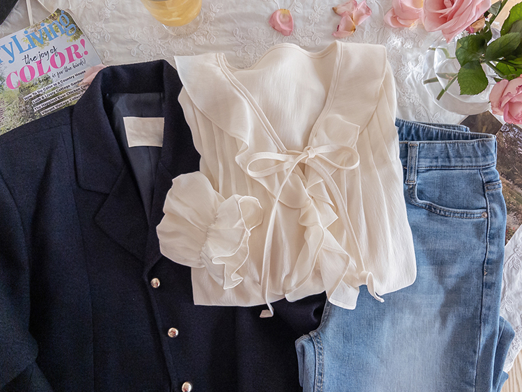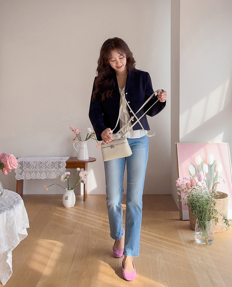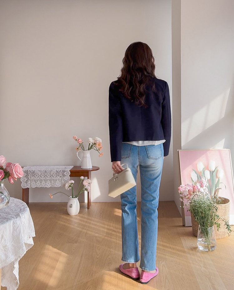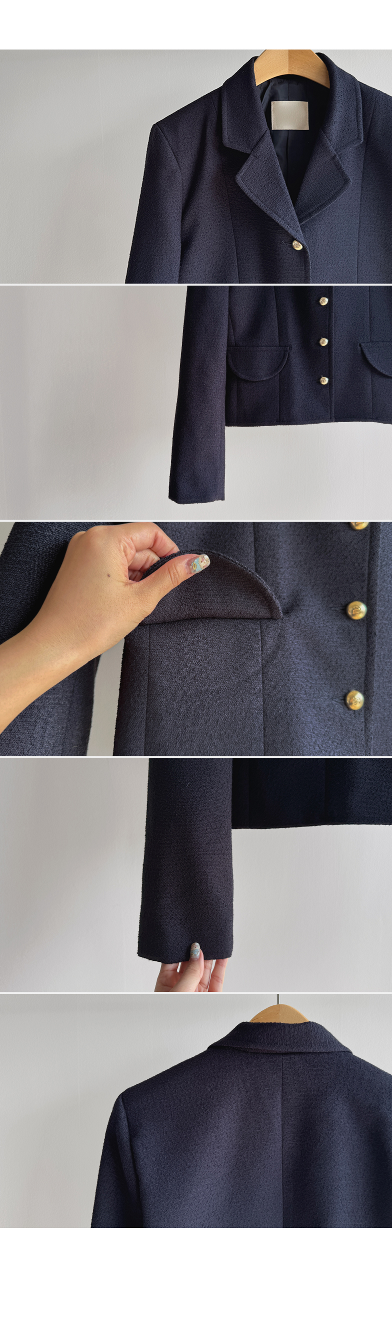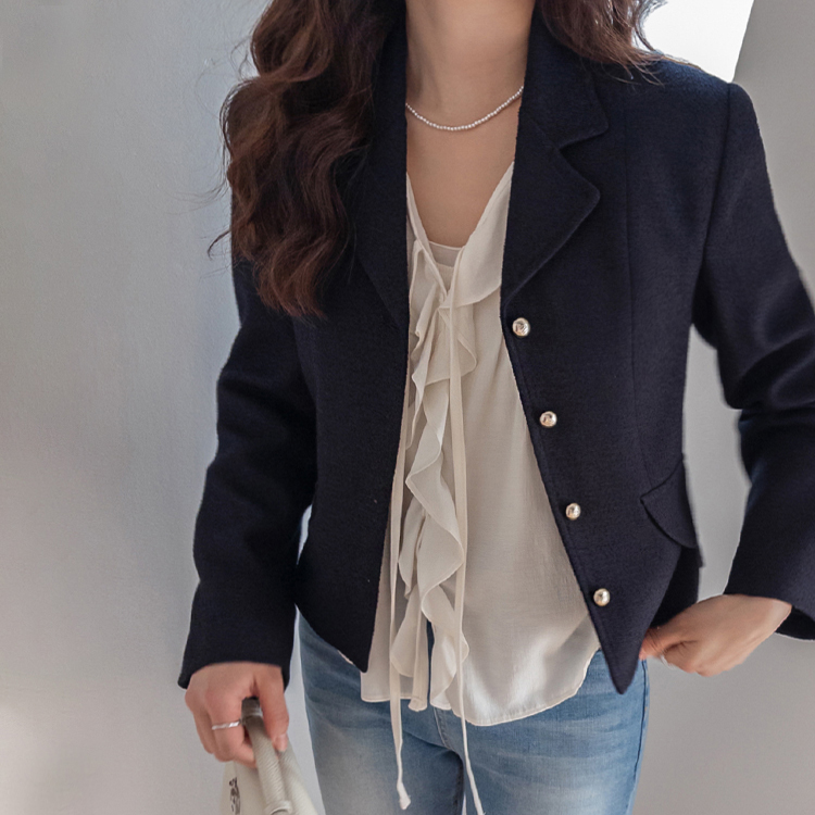 깔끔한 라인의 크롭 기장에 클래식한 무드의 금장 버튼이 더해져 가볍게 걸쳐도 세련된 분위기가 연출되는 트위드 자켓이에요 :) 전체적으로 깔끔한 실루엣에 허리선에 딱 맞는 기장감으로 비율이 자연스럽게 좋아 보이면서 가볍게 툭 걸쳐도 멋스럽게 연출되는 아이템이에요. 프론트에는 은은하게 빛나는 금장 버튼 디테일을 더해 클래식하면서도 고급스러운 포인트를 살려주었고 단독으로도 충분히 존재감 있는 아우터로 완성해주었어요. 페이크 포켓 디테일이 더해져 밋밋함을 덜어주며 전체적인 완성도를 높여준답니다. 또한 안감이 더해져 있어 착용 시 핏을 안정감 있게 잡아주고 이너와의 마찰 없이 편안하게 착용 가능해요. 슬랙스와 함께 매치하면 포멀하게 데님이나 스커트와는 데일리하게 즐기기 좋아 다양한 스타일링에 활용도 높은 자켓으로 추천드릴게요 ♡