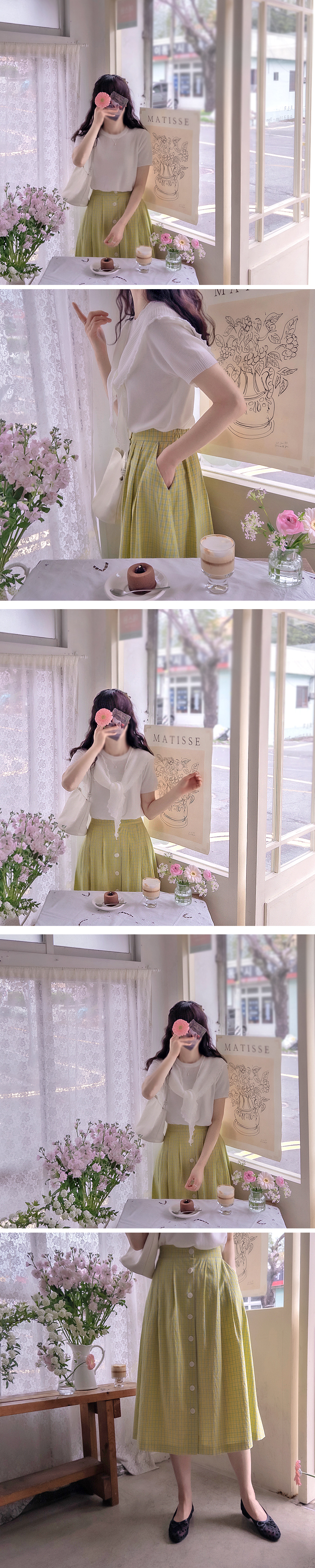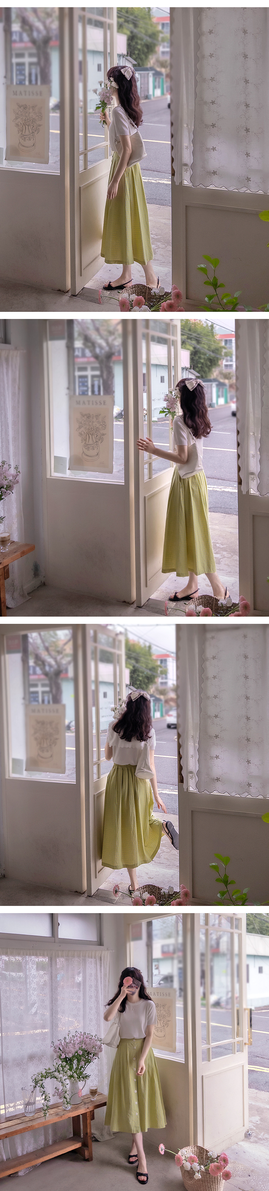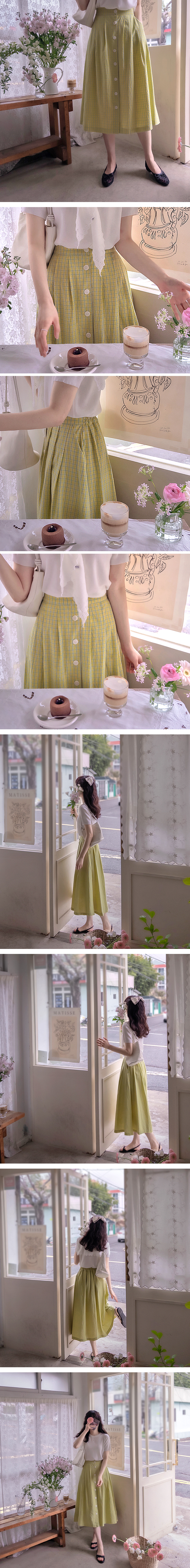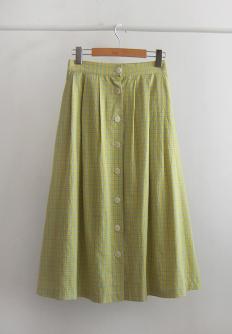 プランティアラブボタン爽やかなチェックバンドスカート[size:F(55~66)]