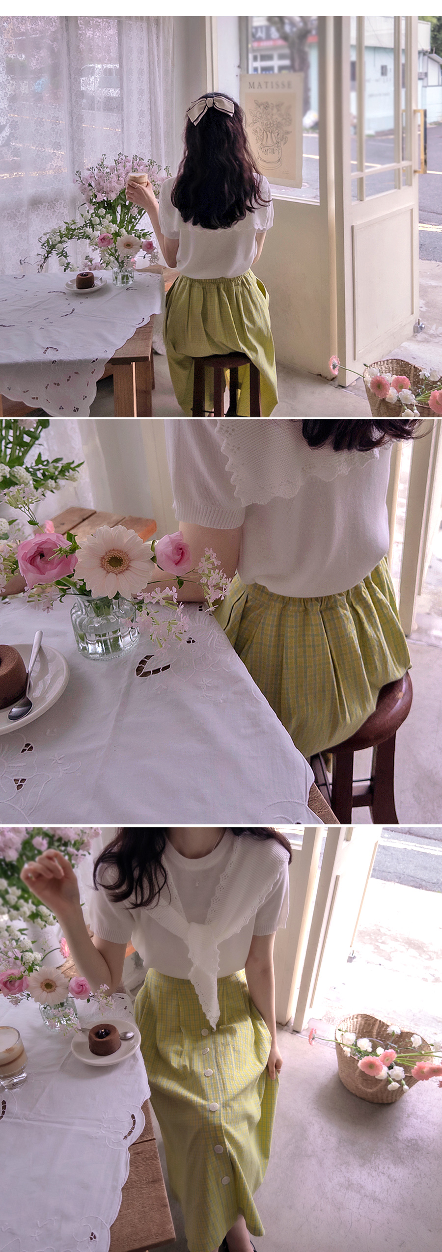 [裏地ポリ][ウエスト後部バンド処理][ボタン開閉可能][春夏良い華やかなラブリーフィットスカート][チェックパターンで構成しており、さらにソフィスティケイトデザイン]
