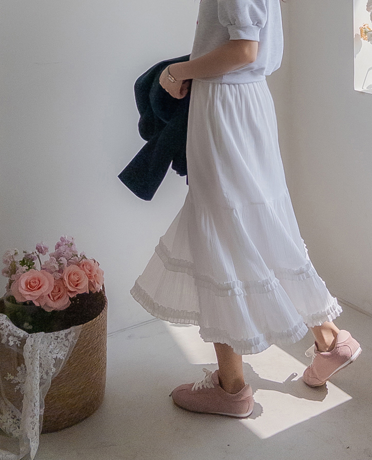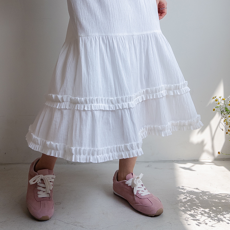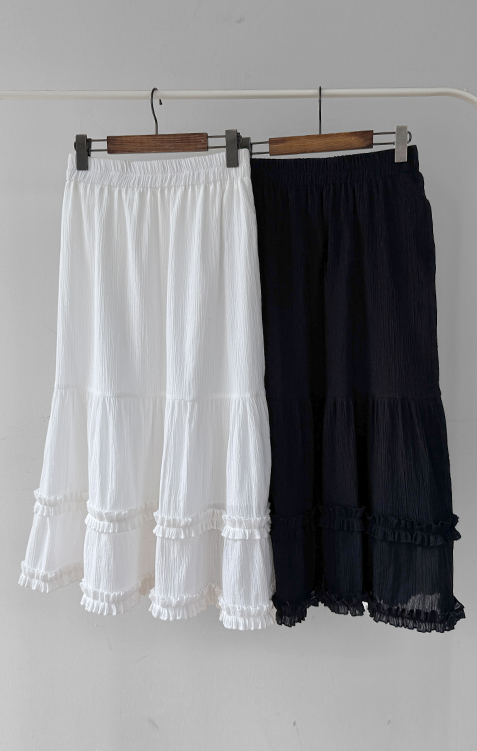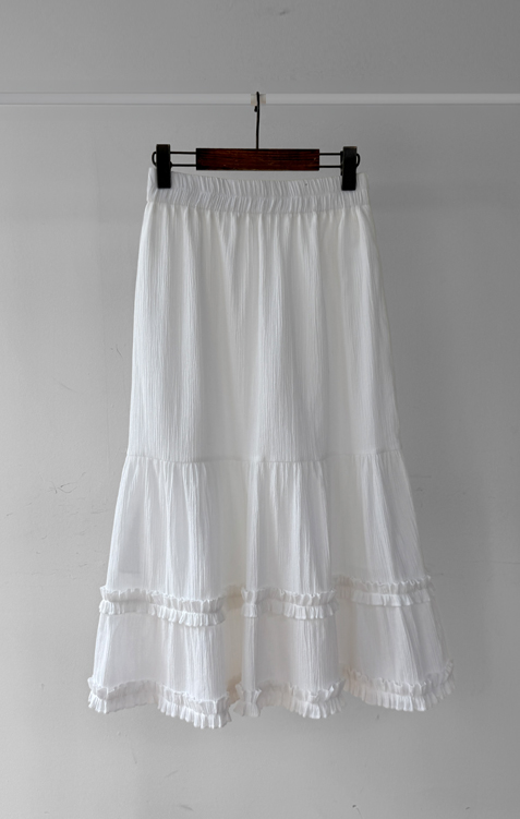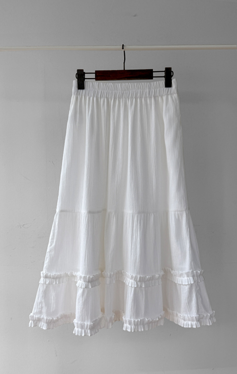 [新賞特価7千ウォン割引] MADE LINエンネル フリル カンカン ロングスカート[size:F(55~66盤)]