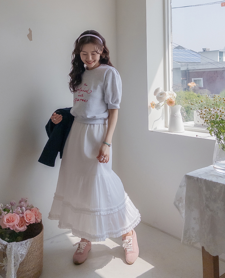 【暖かい春に華やかさを加えてくれるLIN.MADEスカート♥】 【完璧な下半身カバーOK!後バンディングで快適に〜] [ラブリー&女性らしいカンカンスカート*.*] [空〜空きれいなスカートフライングがポイント]