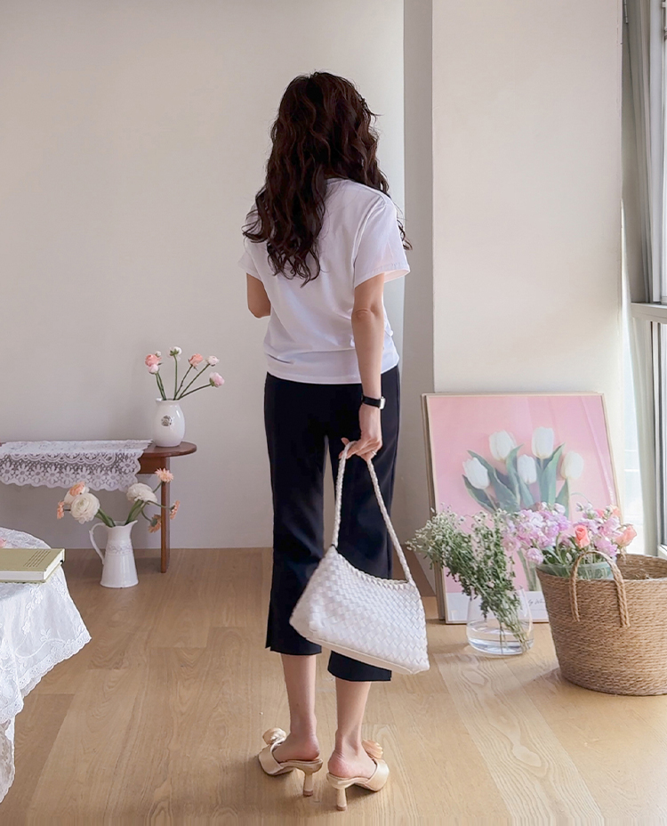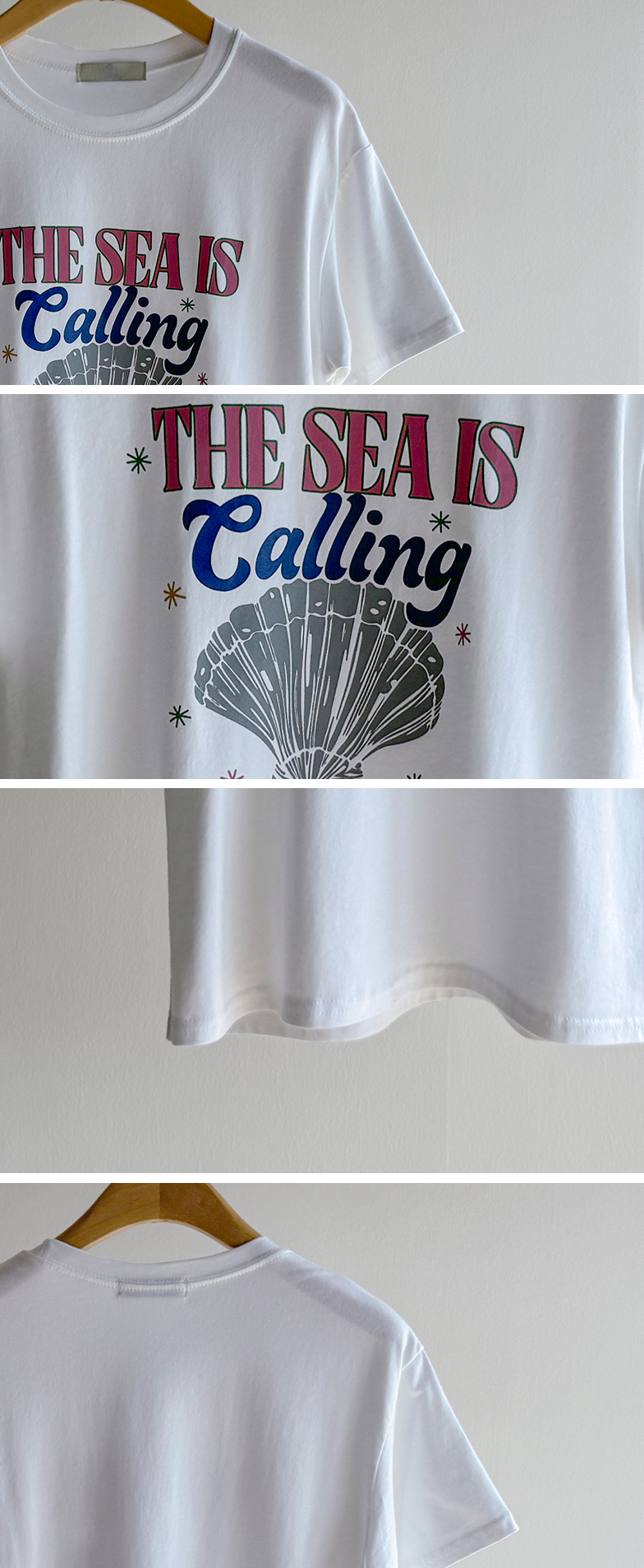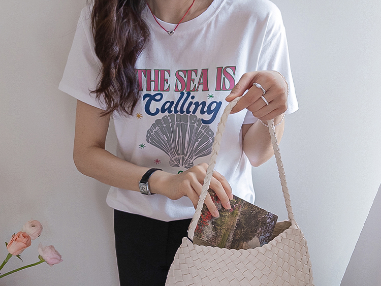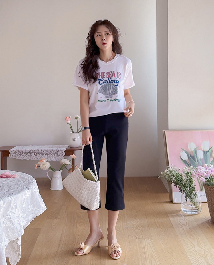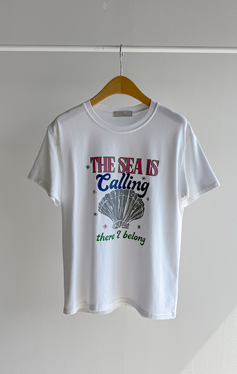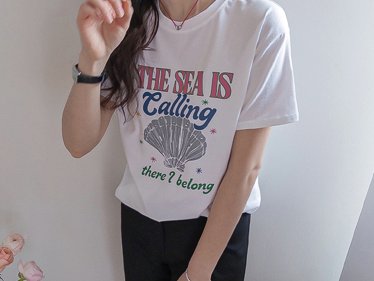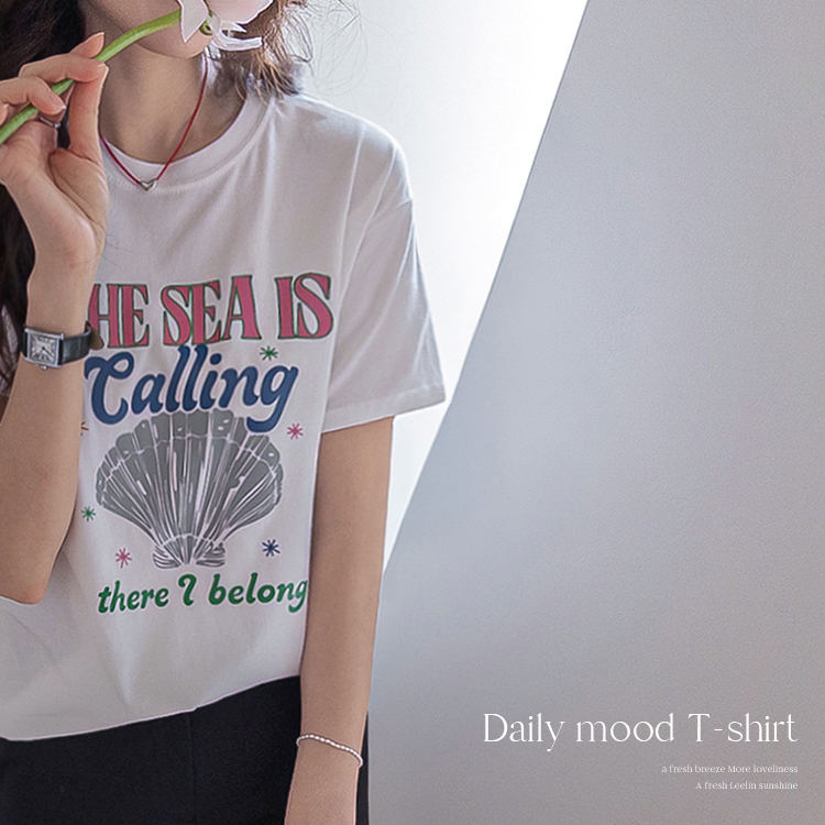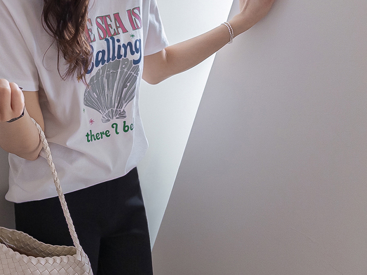 캐주얼하게 즐기기 좋은 프린트 티셔츠 소개드려요 ^^ 전체적으로 너무 타이트하지 않은 세미 루즈핏으로 편안하게 입기 좋은 아이템이에요. 기장은 힙을 살짝 덮는 정도로 내려와 부담 없이 착용 가능하면서 자연스럽게 체형 커버까지 도와주고요, 앞판에는 레터링과 쉘 그래픽이 어우러진 프린트가 더해져 경쾌하고 시원한 분위기를 연출해줍니다. 데님, 슬랙스, 스커트 어디에나 잘 어울려 데일리로 활용하기 좋은 티셔츠로 추천드릴게요 ♥