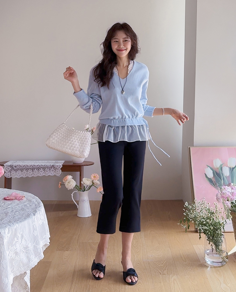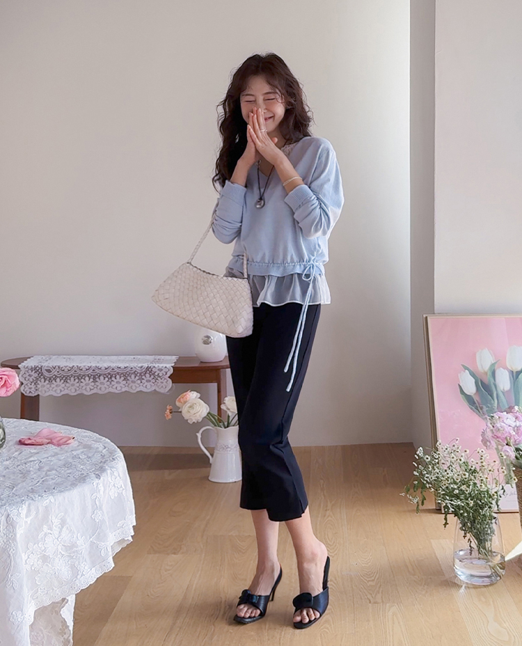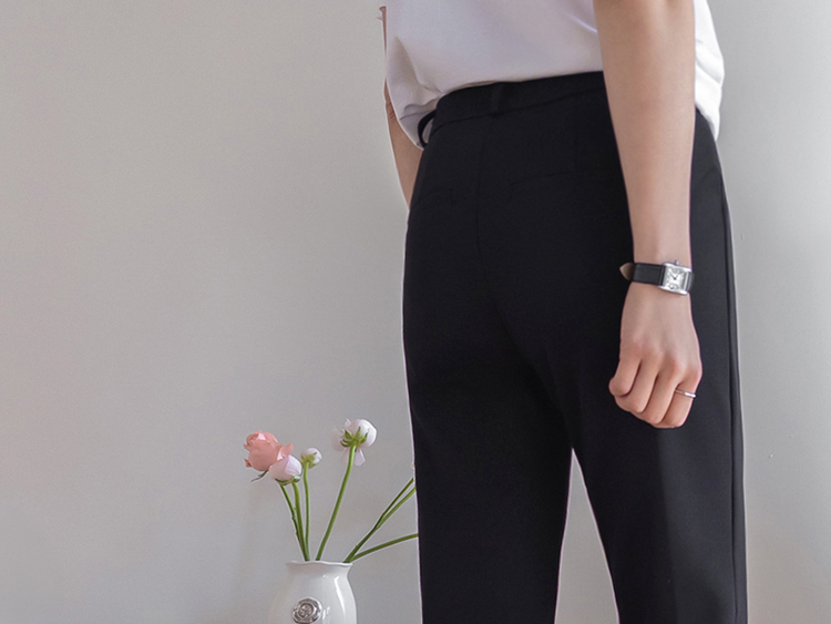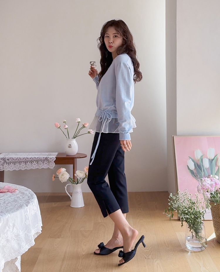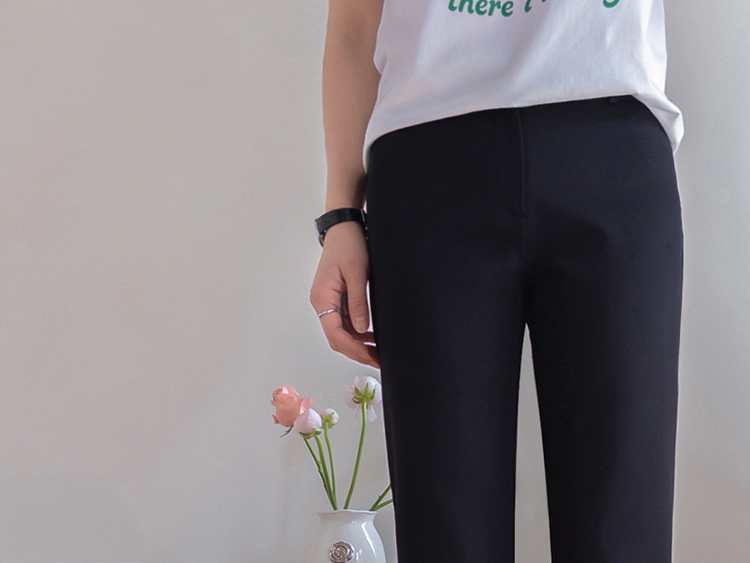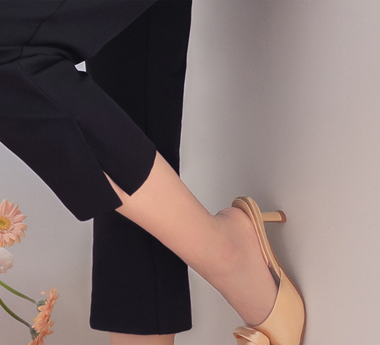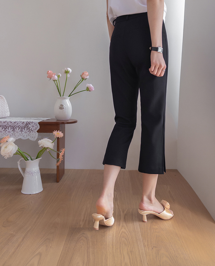 깔끔하면서도 활동성이 좋은 카프리 팬츠 소개드려요 ^^ 전체적으로 레깅스처럼 과하게 붙지 않으면서 다리 라인을 따라 슬림하게 정리되는 핏으로 부담 없이 착용하기 좋은 팬츠예요. 기장은 종아리 중간보다 살짝 아래로 떨어지는 카프리 기장으로 가볍고 산뜻한 분위기를 연출해주며 여름 시즌에도 시원하게 입기 좋고요, 밑단 옆에는 슬릿 디테일이 더해져 움직임이 편하면서도 은은한 포인트가 되어줍니다. 신축성 있는 스판 원단으로 제작되어 활동성이 뛰어나고 착용감이 편안해 데일리 팬츠로 활용도 높게 입기 좋은 아이템이에요 ♥