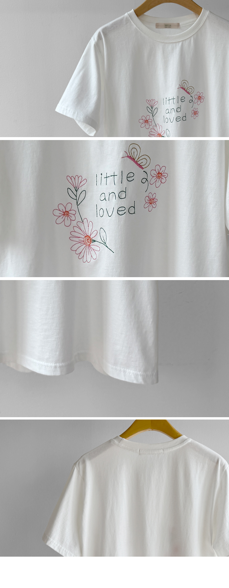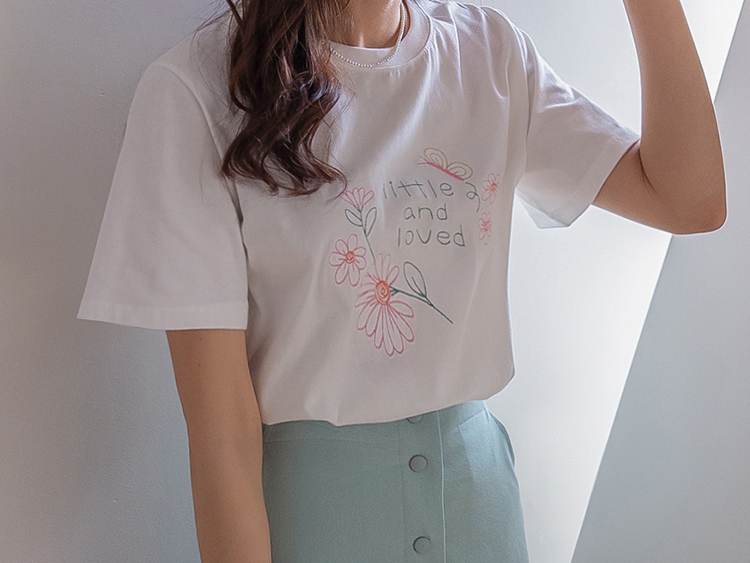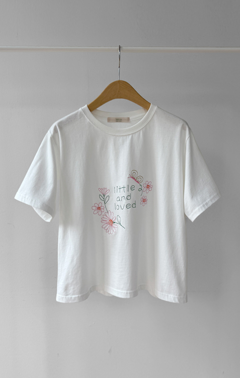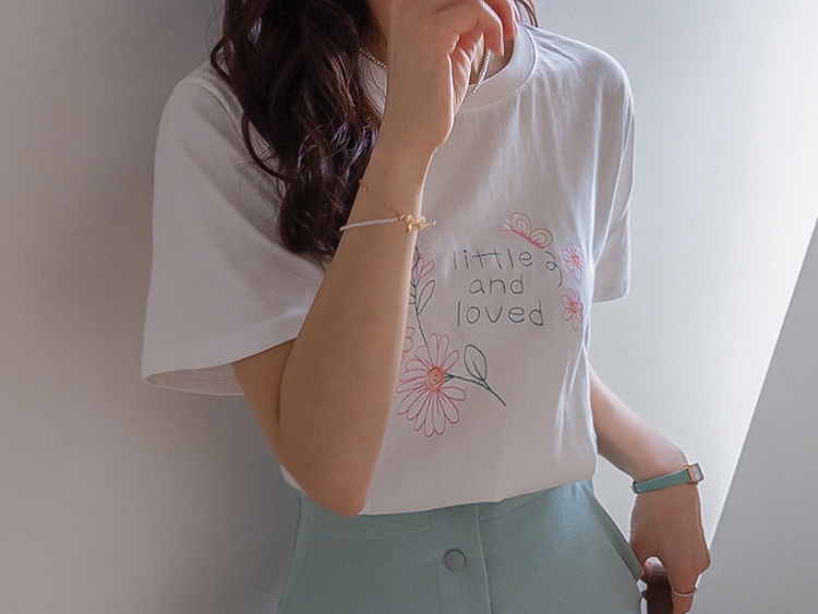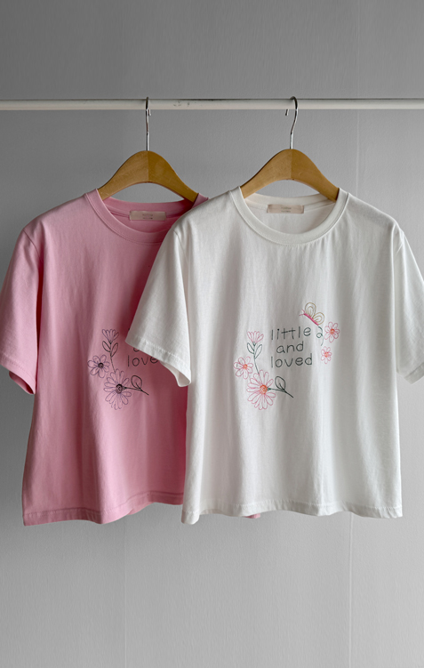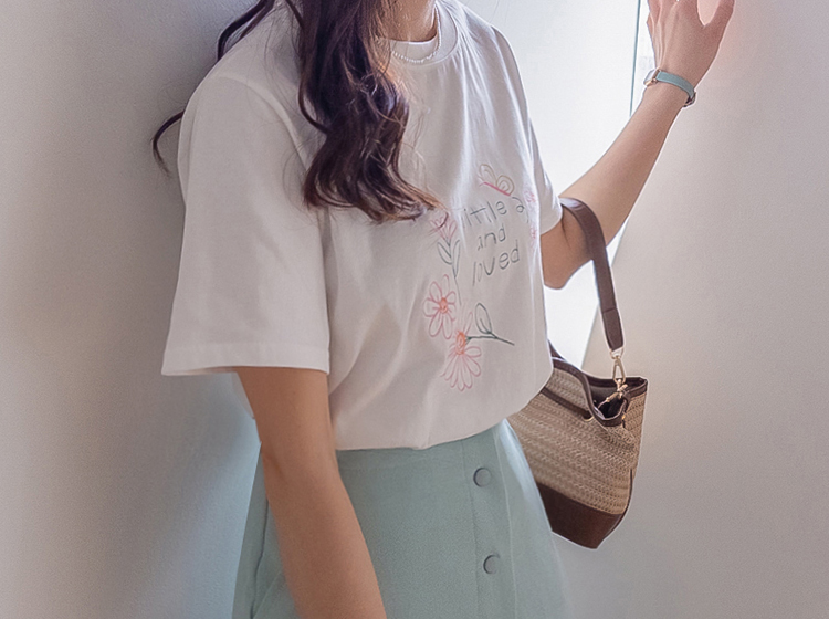 [感性的なフラワー刺繍でポイント*.*] [きれいなラウンドネック基本フィット] [やわらかい綿100%素材]